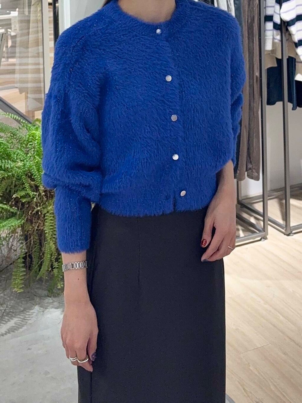 ロイヤルブルーのお色がとっても華やかなカーディガンは、シャギーの柔らかいお素材で着心地も抜群です!