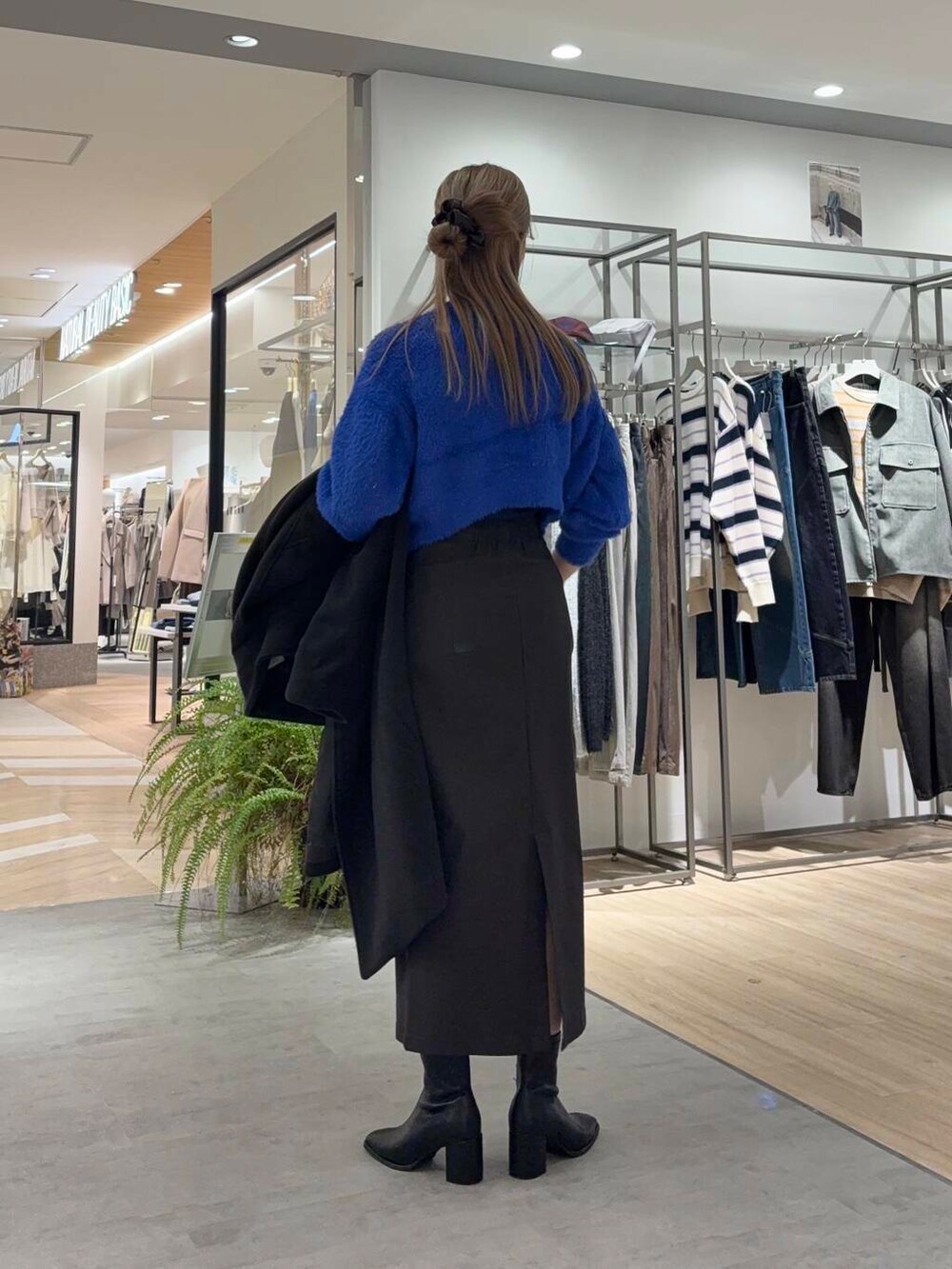 クリスマスは赤を選びがちですが、あえてブルーを選ぶと被りづらく、より大人っぽく決まるのでぜひデートに着てほしいアイテムです!