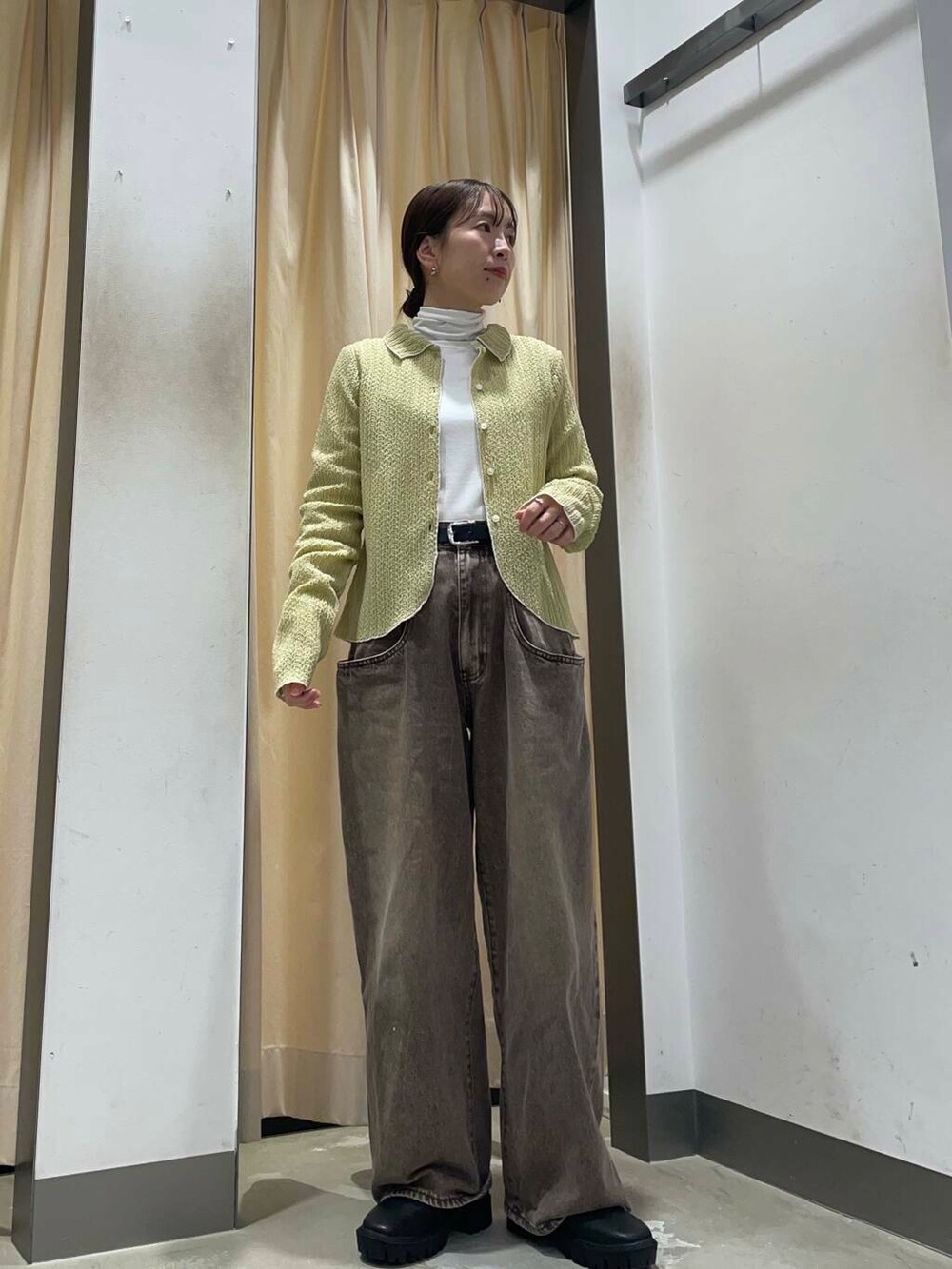 お顔がワントーン明るく見える、ピスタチオカラーと白を合わせて爽やか合わせにしました!