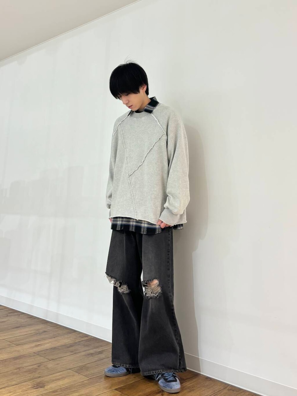ダメージチェックルーズシャツ