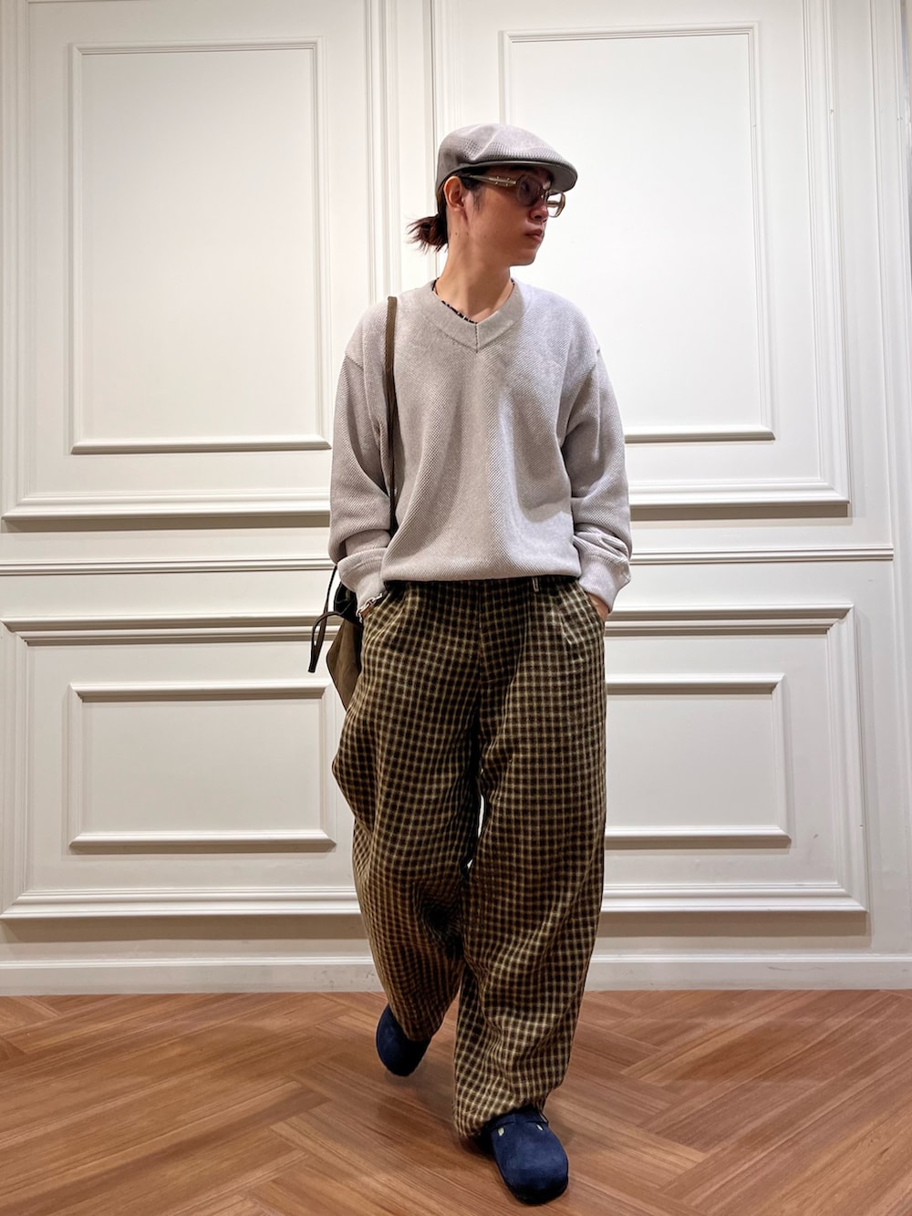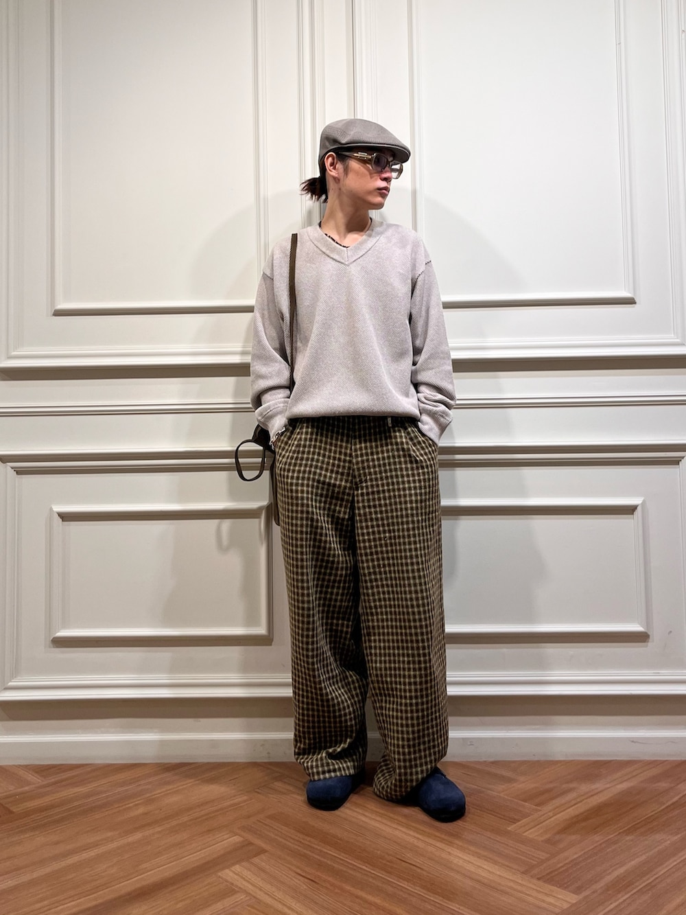 クレプスキュール別注のvネックニット、カノコ素材はお手のもの!ネックの深さもちょうど良く、色気の出るアイテム🥴