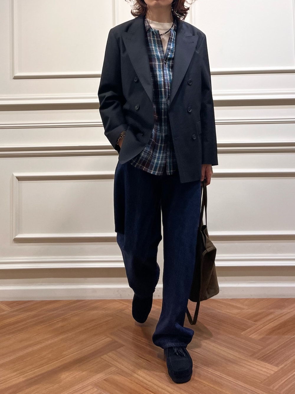 今期のチェック柄のナイスネスにWOOLLINENのドライタッチジャケット、ダブルの仕様でカジュアルにもドレッシーにも合わせられるかと今からがオンタイム!
