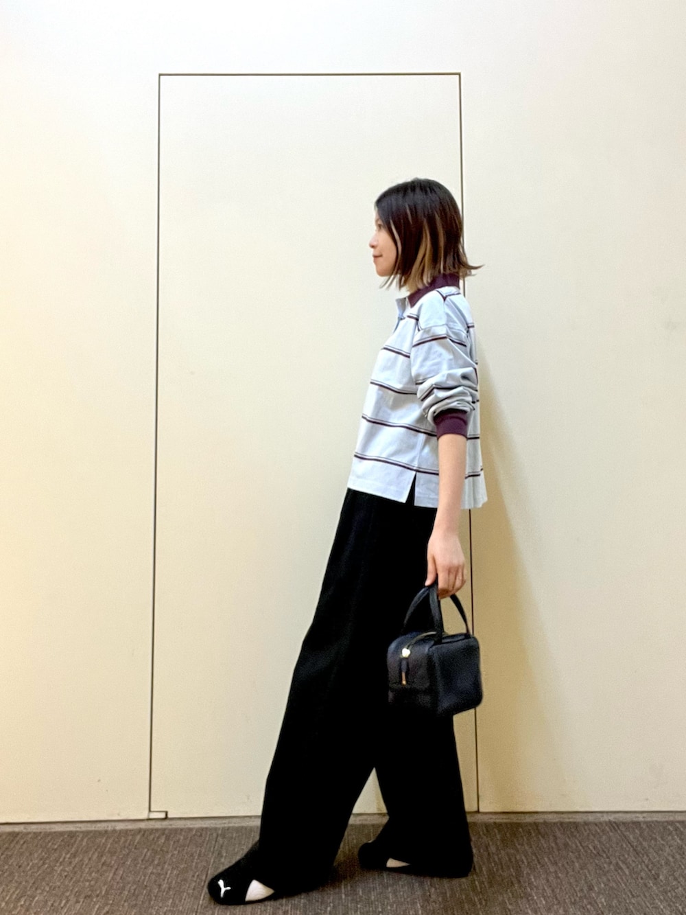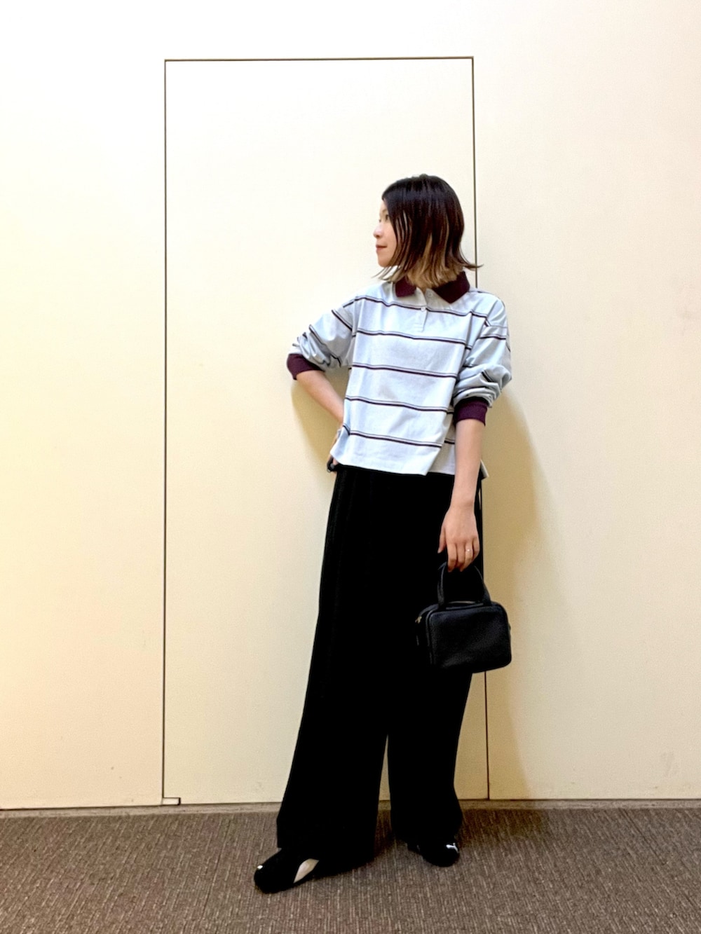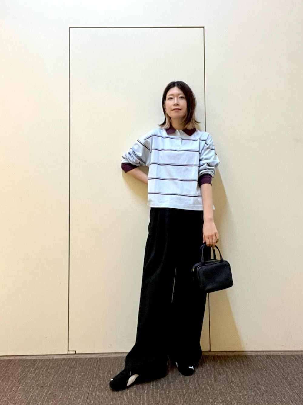 championのポロシャツは配色が可愛いく1枚で主役になるアイテム◎コンパクトな着丈なのでボリュームのあるボトムスと相性が良いです👌🏻