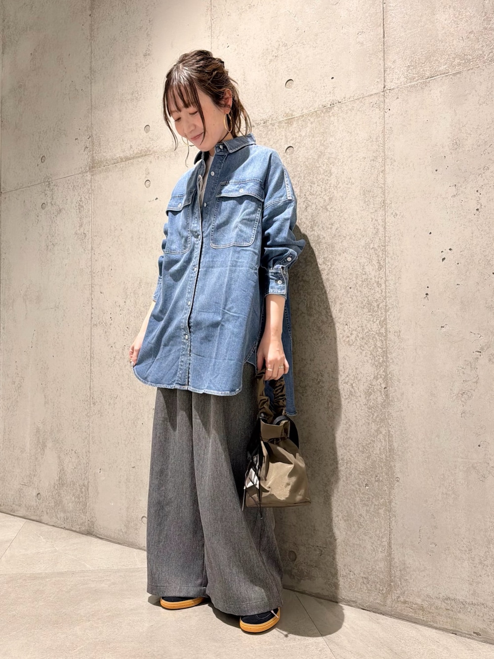 鮮やかなレッドが目を惹くカーディガンときれいめパンツで、ミニマルなシンプルコーデです。