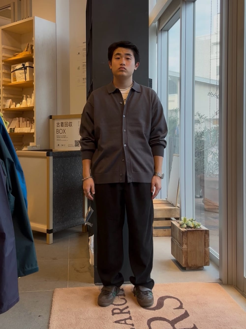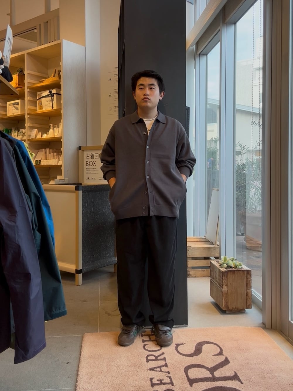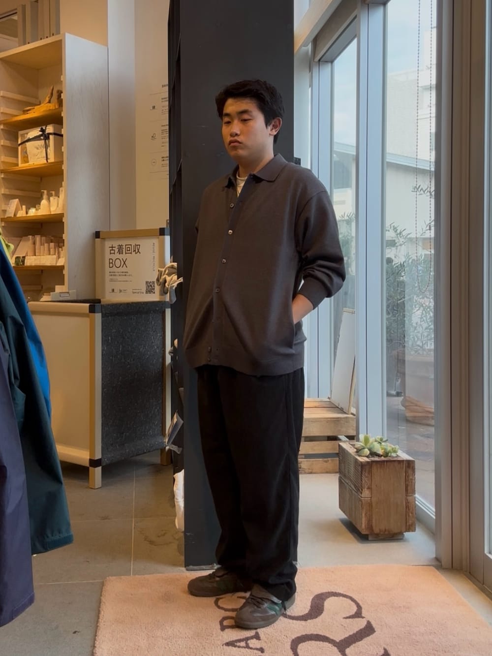 200日ニットのシャツカーディガンに、ウェールコーデュロイのパンツを合わせました。