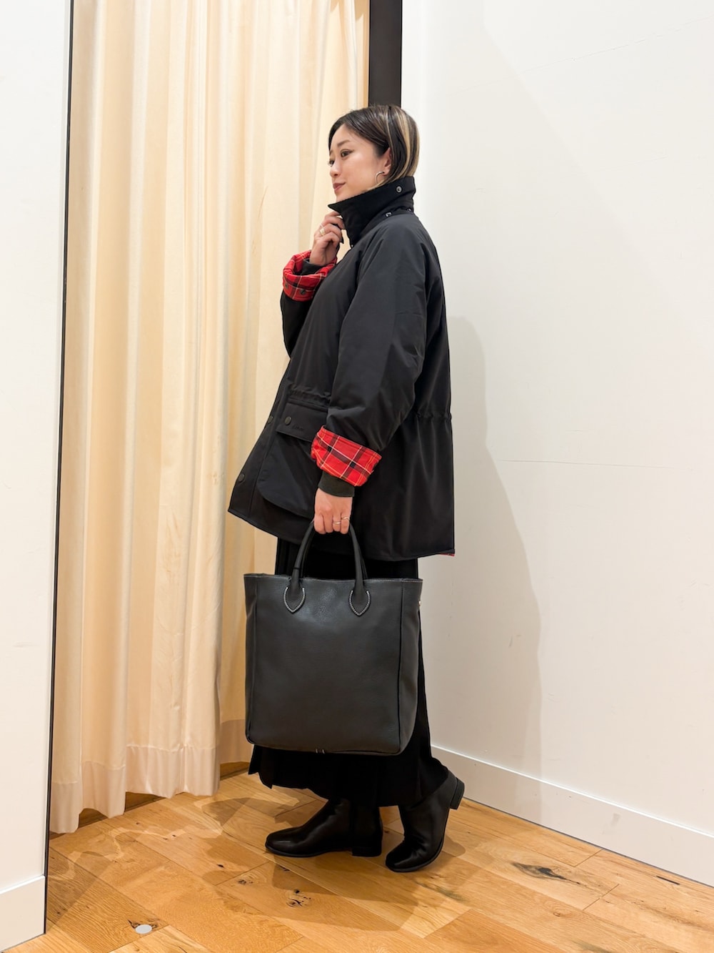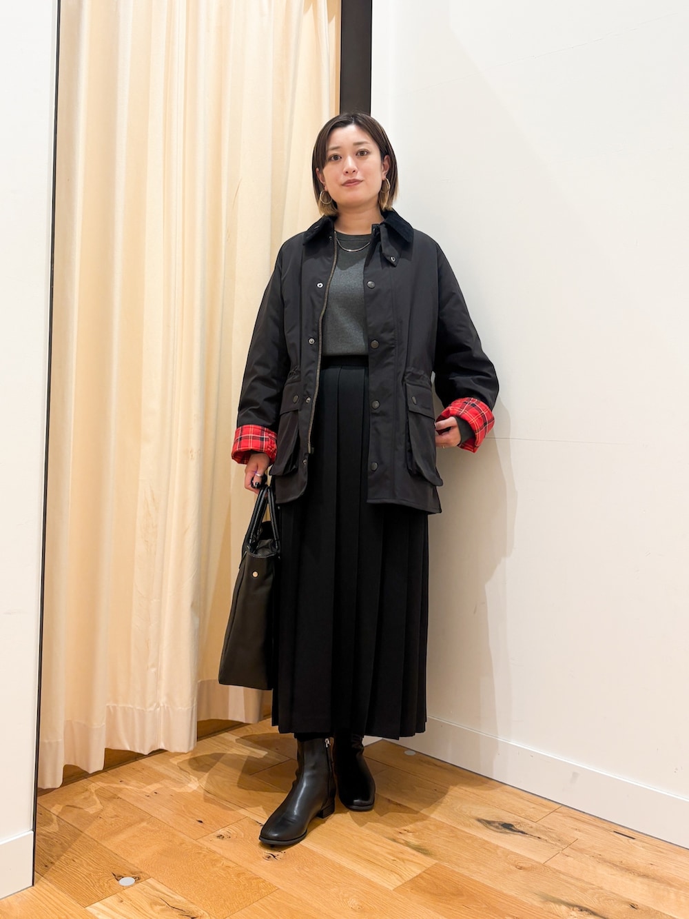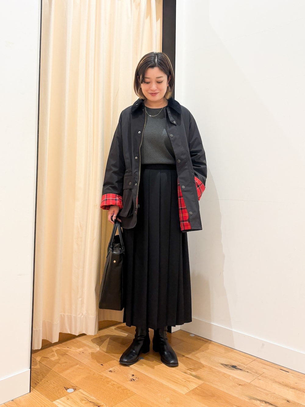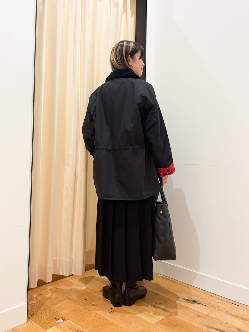 チラッと覗く裏地のチェックカラーがアクセントでとても可愛い一着です。