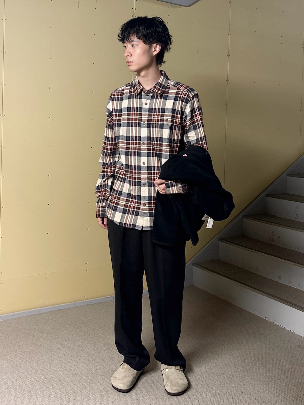 靴は色が優しめのビルケンで中のシャツとあわせてみました!