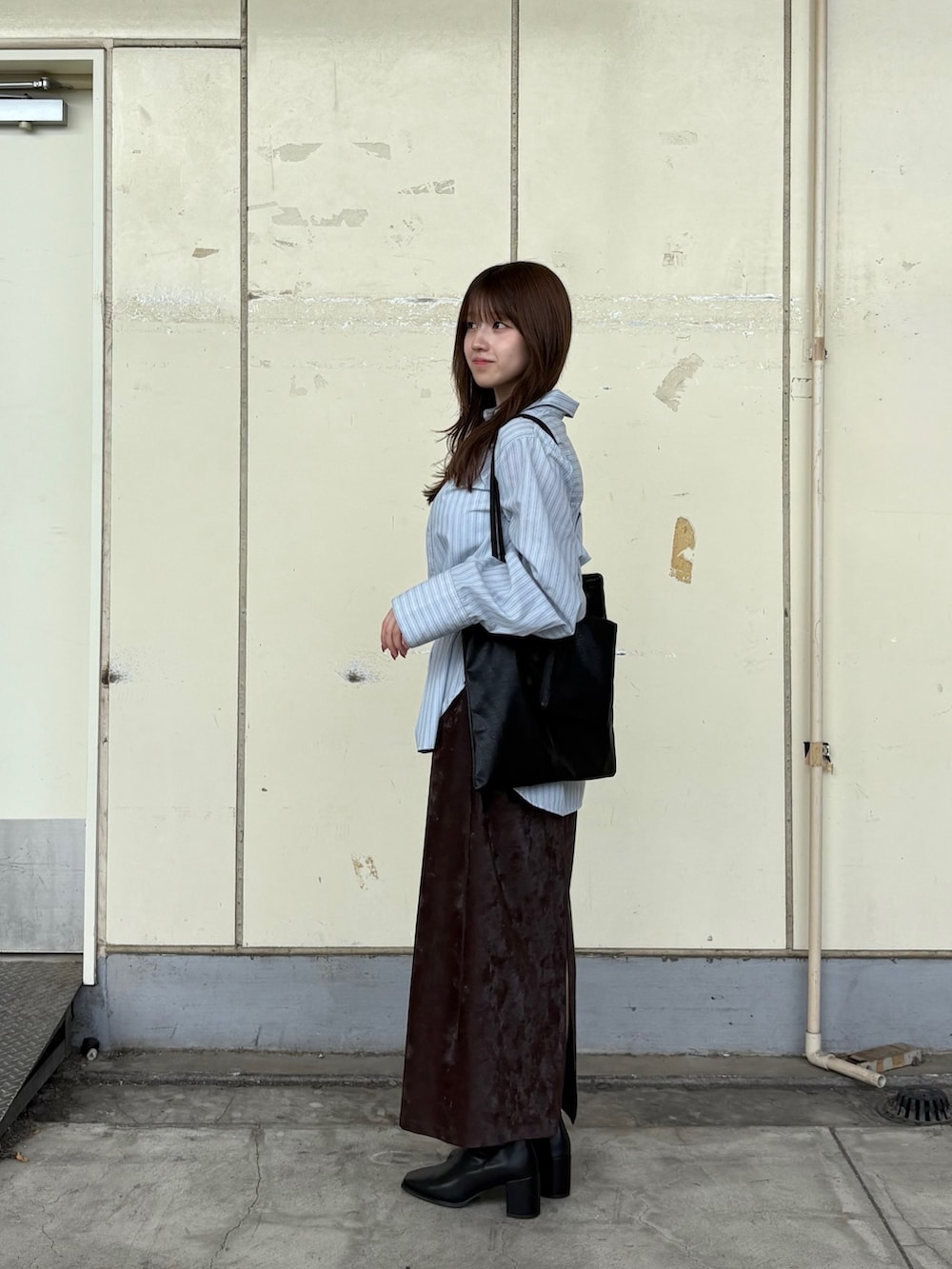シャツは大きめのシルエットなのでベルトでウエストをしぼり、ボタンを上から2つ開けました!このコーデだったら骨ストさんでも着ぶくれ心配ナシです☆