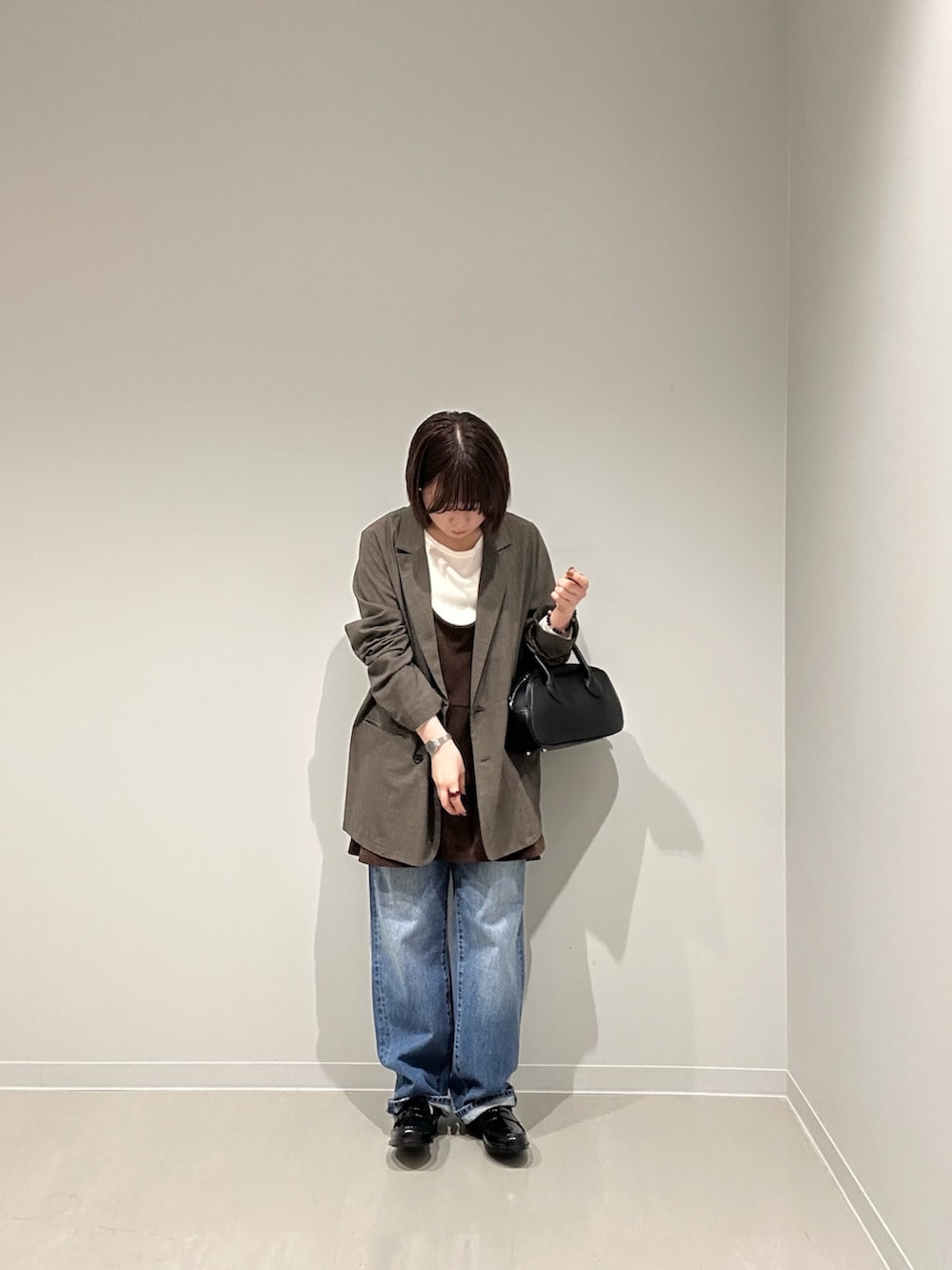 シルエットが綺麗なジャケットをメインにデニムを合わせたキレイめカジュアルなコーディネートをしてみました!✨2way仕様のワンピースは中に合わせてレイヤードするのもとっても可愛いので是非試してみてください!^^