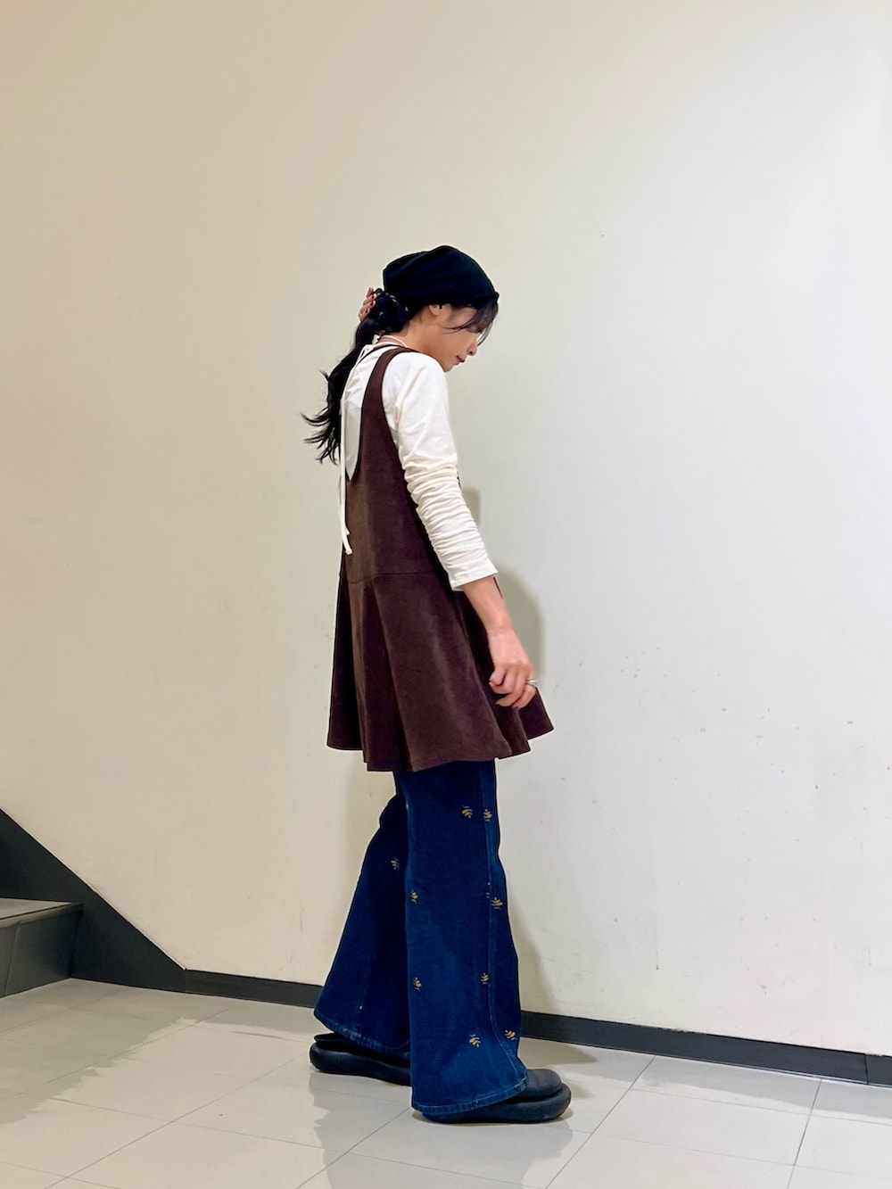 前後2wayで着用できるミニワンピースはロングブーツはもちろん、フレアボトムスとの相性も抜群です◎
