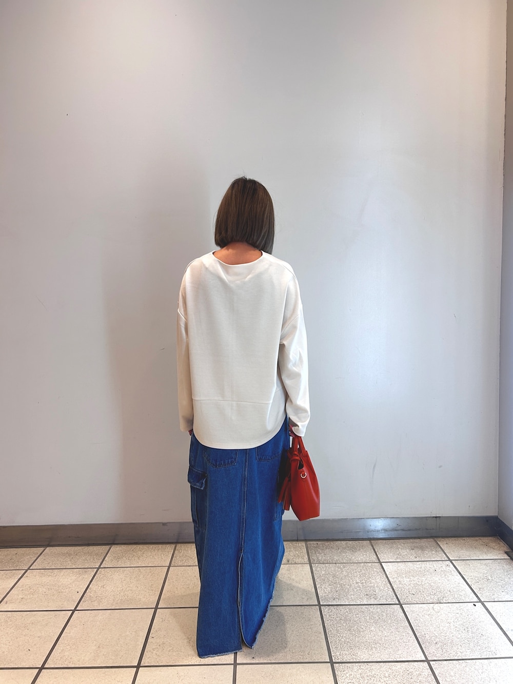 差し色でオレンジ色のショルダーバッグを合わせてみました!今回はハンドバッグとして◎