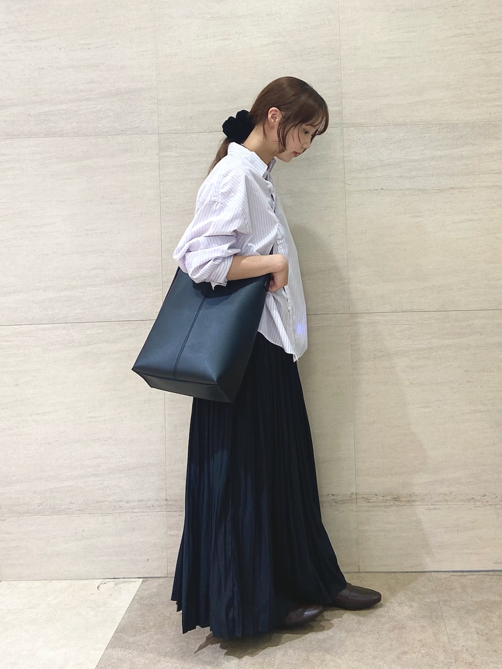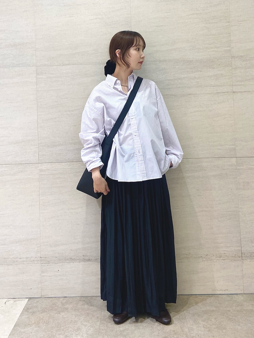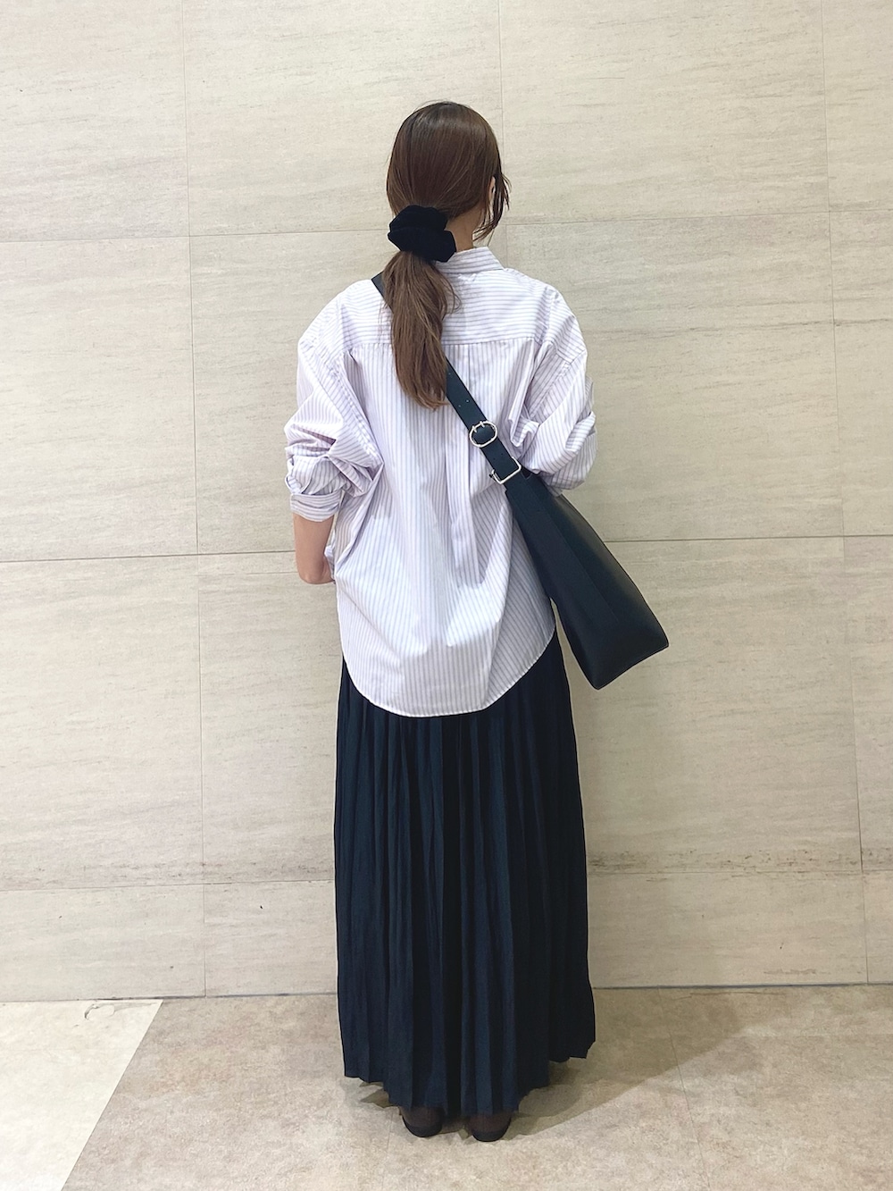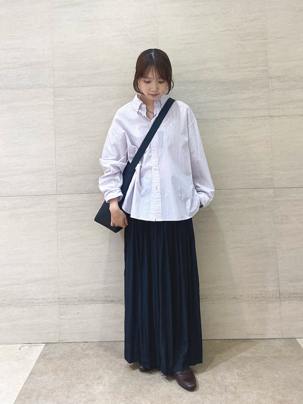シャツは大きすぎずな作りがカジュアルすぎなくてオススメです。