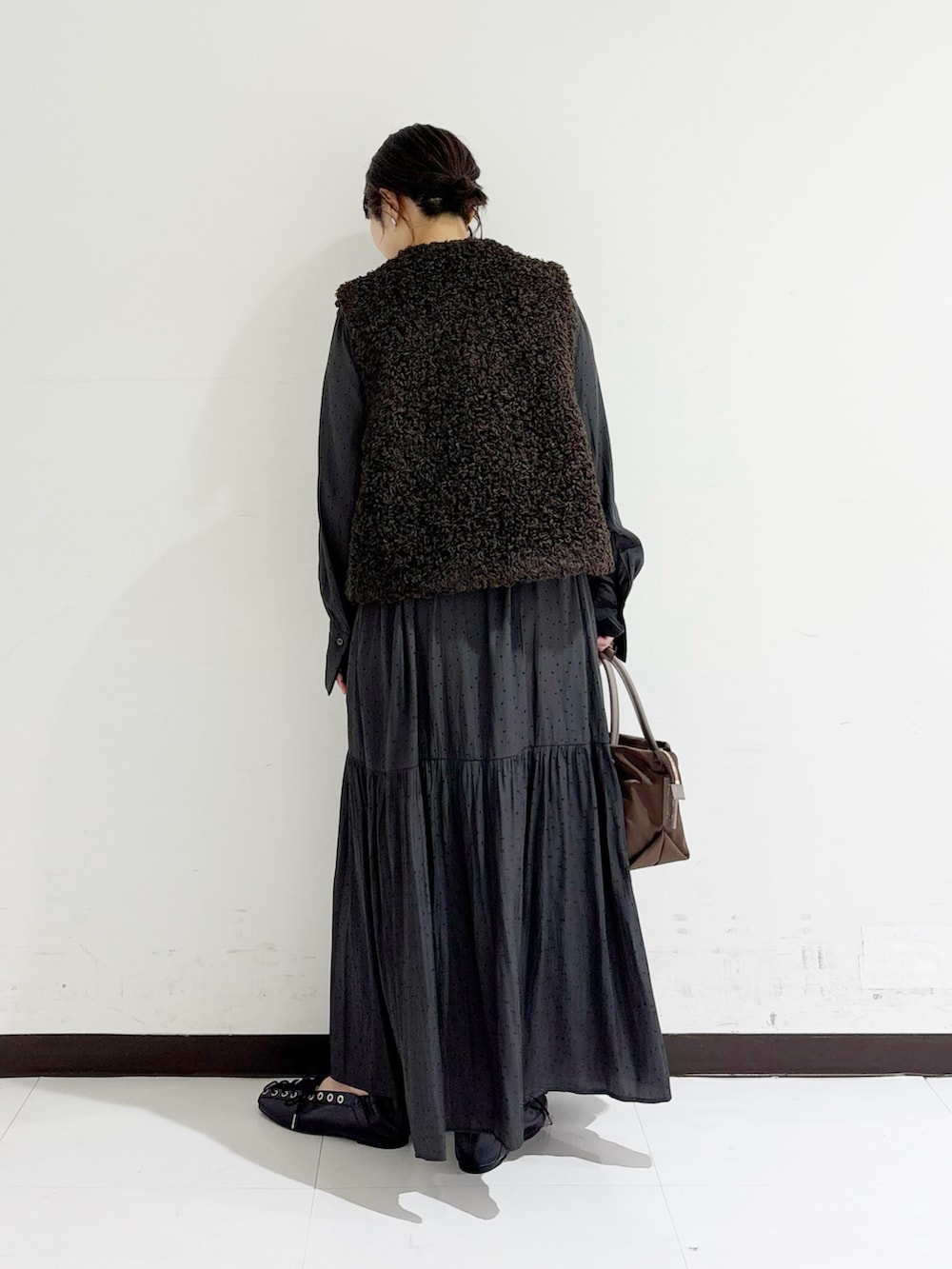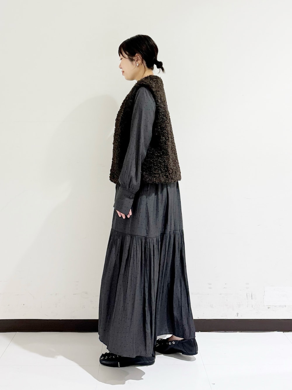 3シーズンで着用していただけて、冬はスウェットやニットをレイヤードさせてスカートとして着るのも可愛いなぁ🤭と。