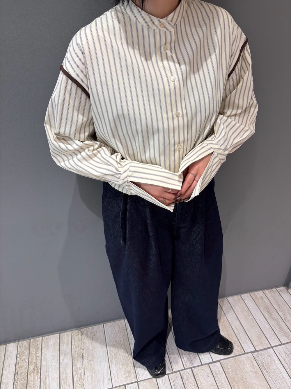 ヘムカットのデザインとストライプ柄がモードな雰囲気を演出してくれるシャツはこちら⸝꙳.˖