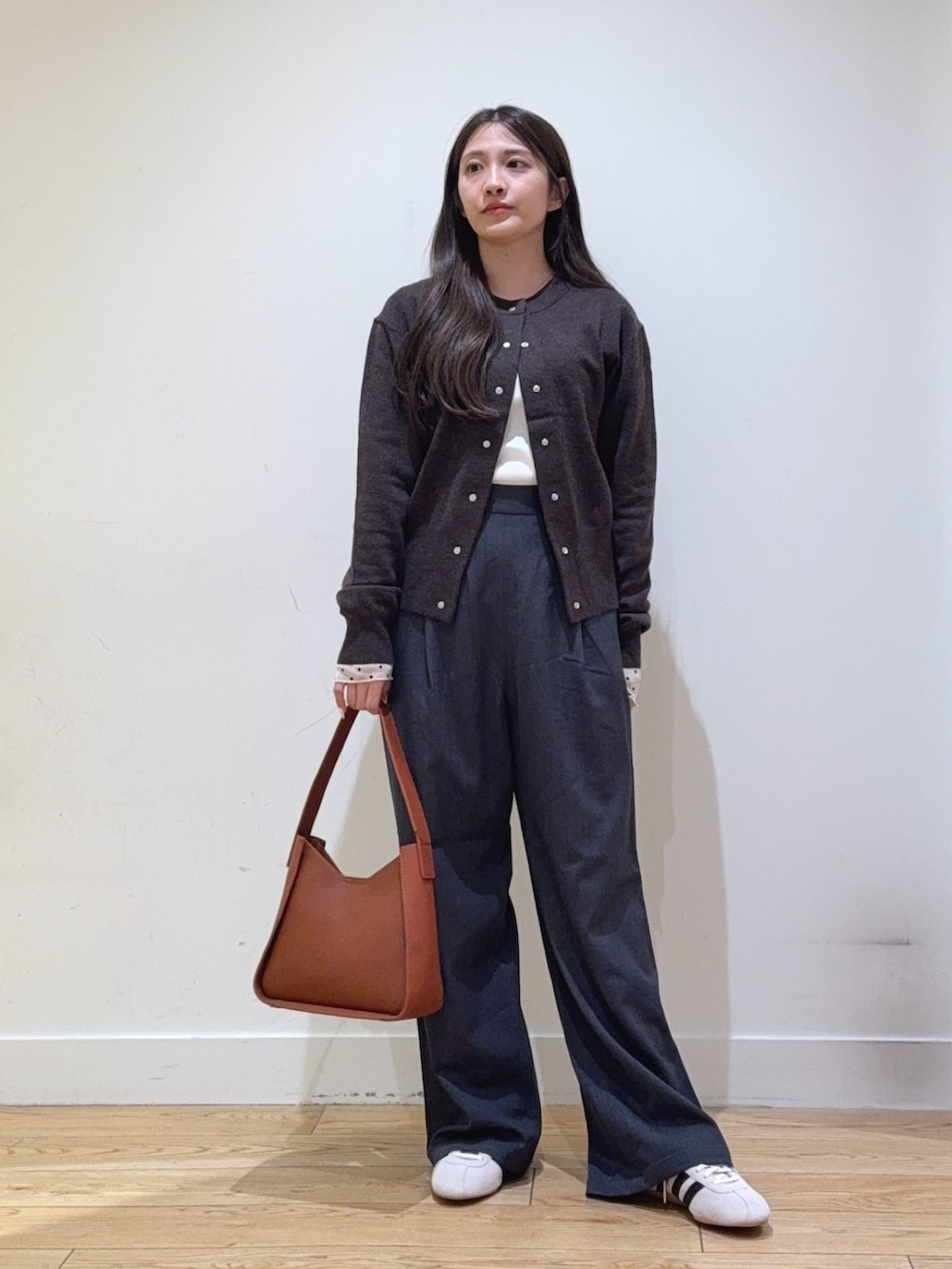 FORK&SPOONのカーディガンは、ちくちくが気にならない生地で羽織でもトップスとして着てもかわいいです!