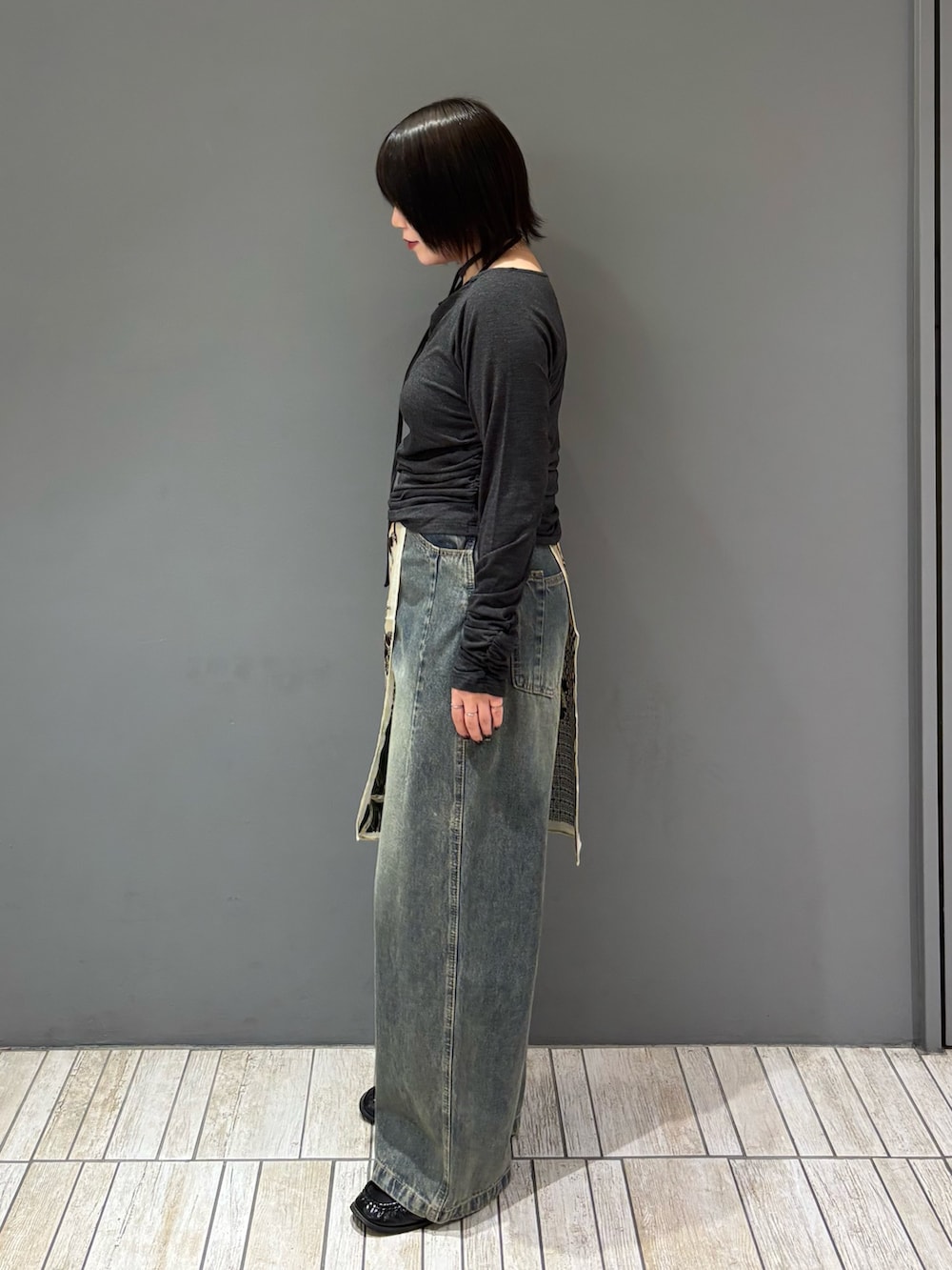 サイズは36・38の2サイズ展開で、ウエストの紐で調節も可能になっており紐は内側にしまうこともできるのでコーディネートの雰囲気合わせて使い分けも可能です✊🏻