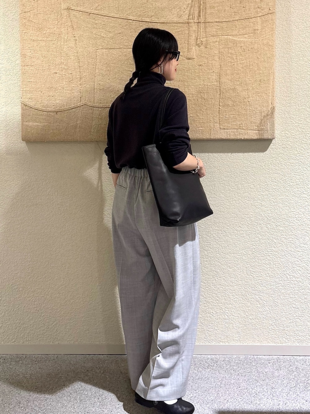 ・同系色のチャコール×グレーでまとめたワントーンスタイル