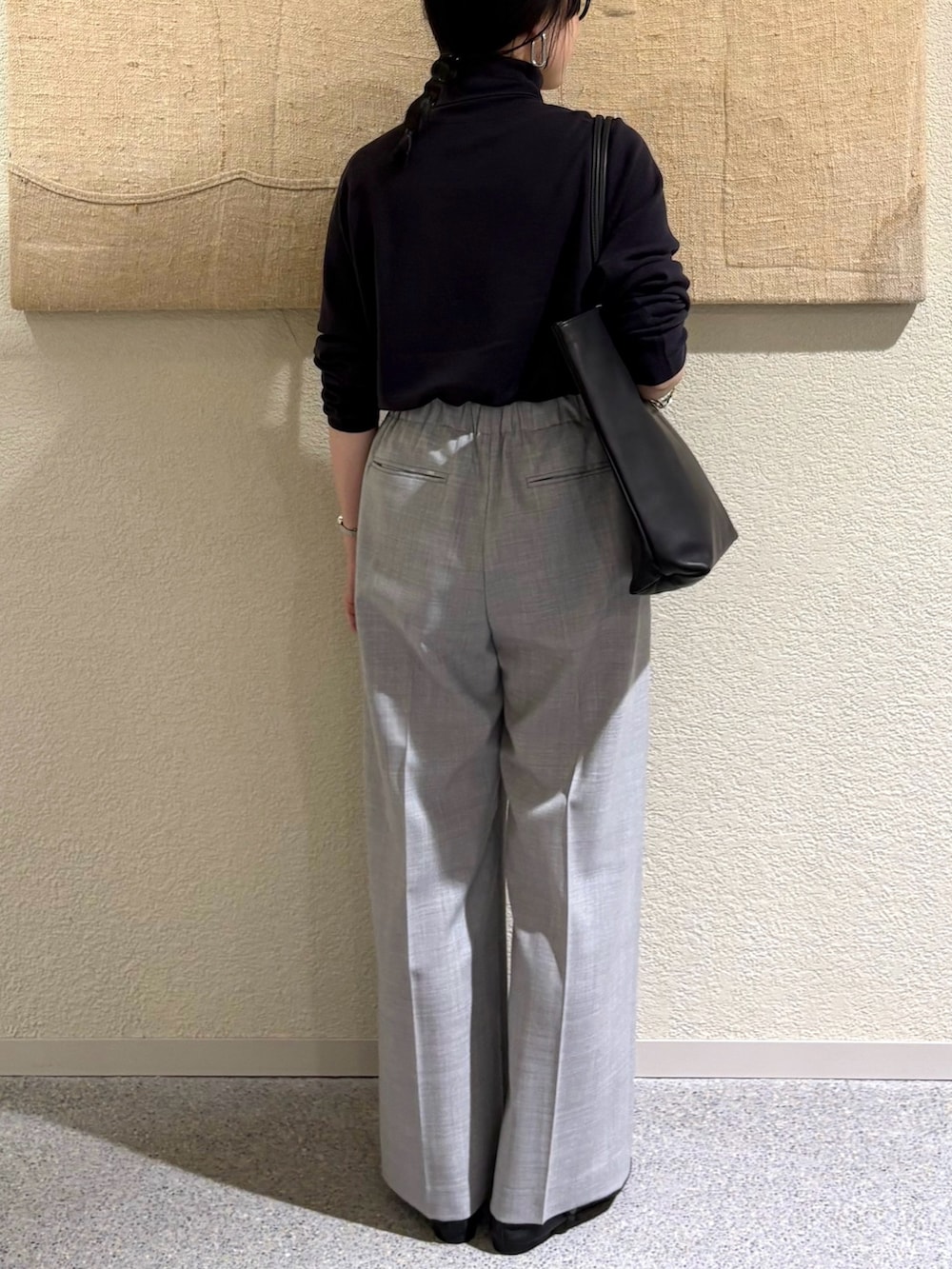 ウール素材ながら家庭で洗える便利さが魅力のイージーパンツ。リラックス感のあるシルエットと上品なグレーが、オンオフ問わず使いやすい一本です。タートルをインすることで腰回りをすっきり見せ、スタイルバランスを整えます。