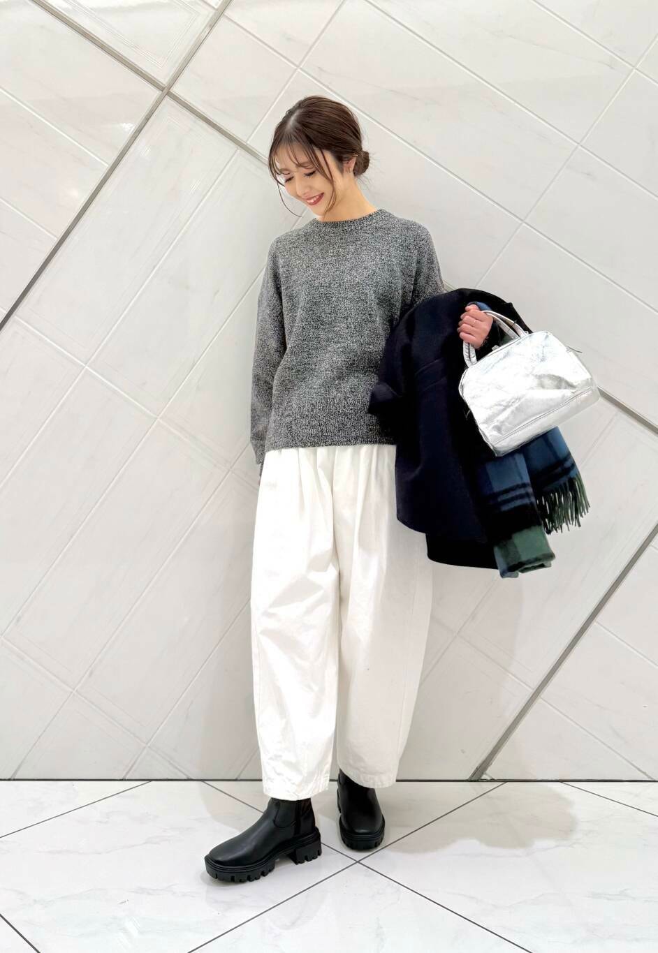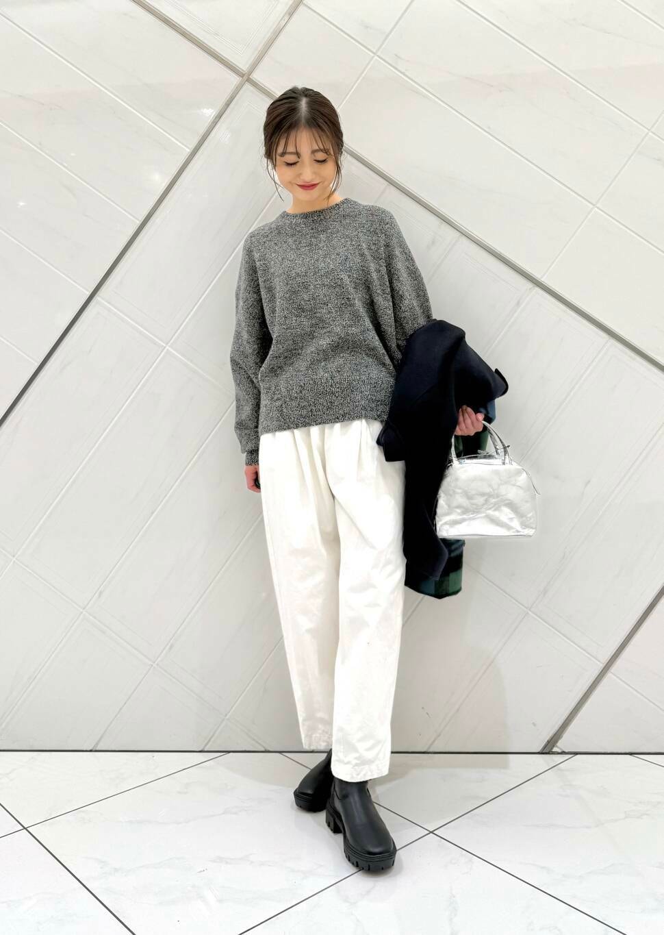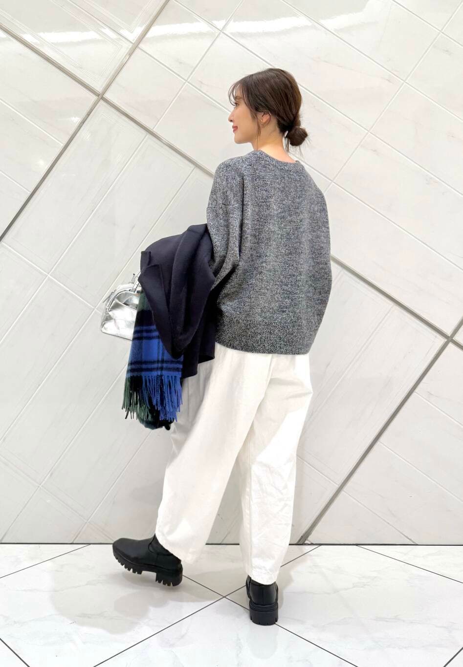 柔らかな肌触りでチクチク感のない着心地のいいニットです。程よいゆとりがありながらもスッキリとした着丈でボトムスを選ばない万能アイテムです。