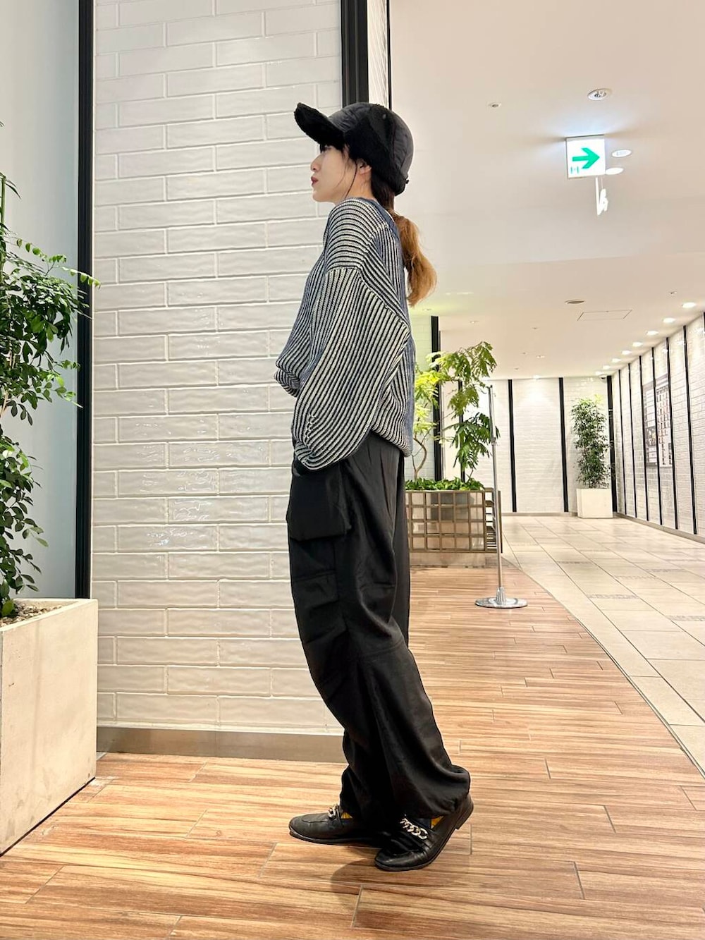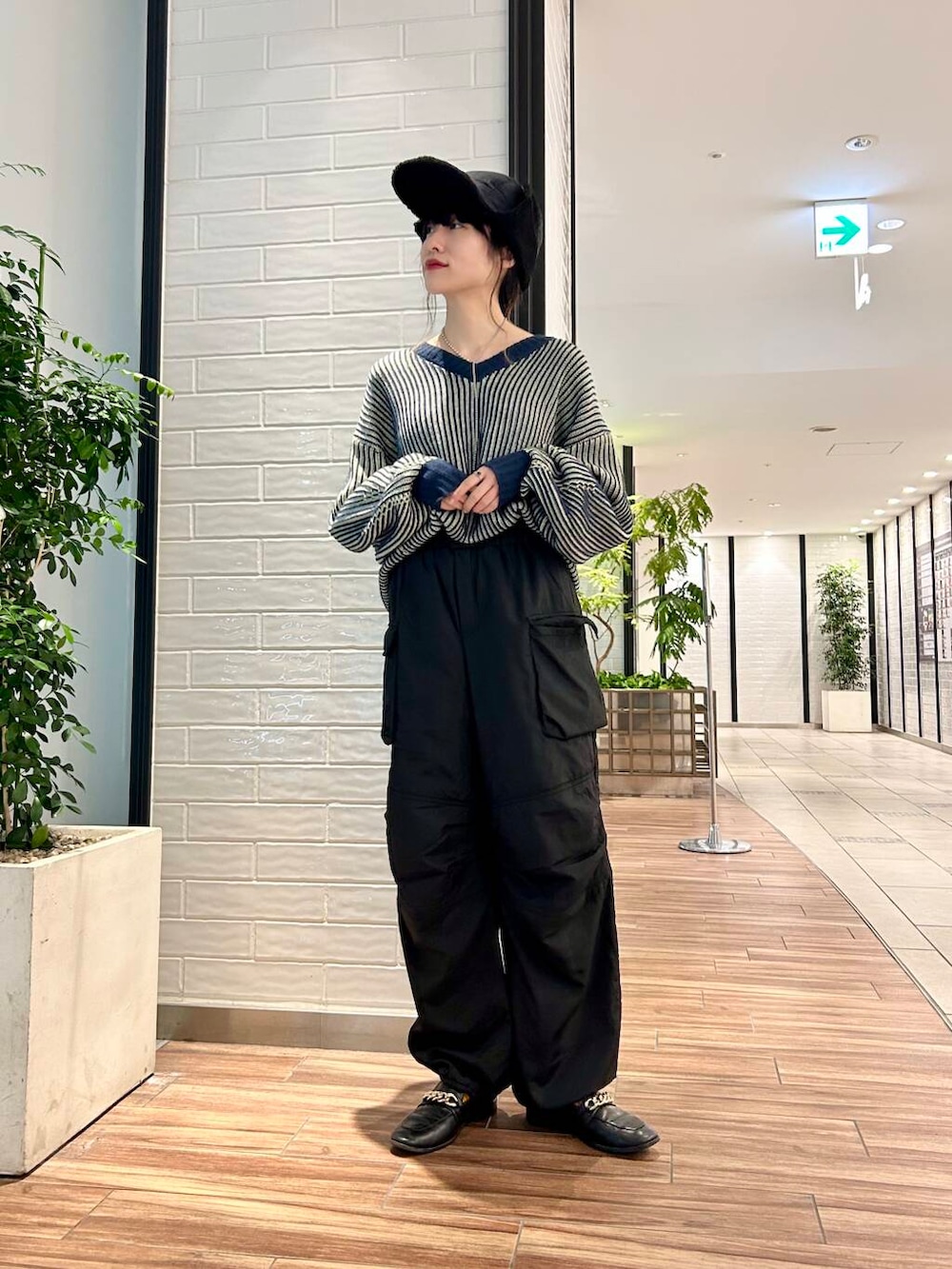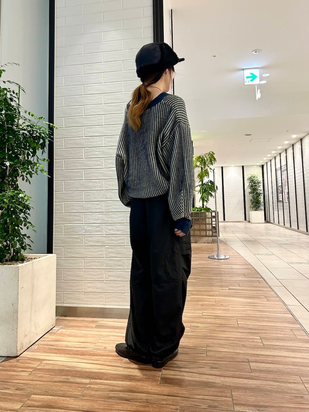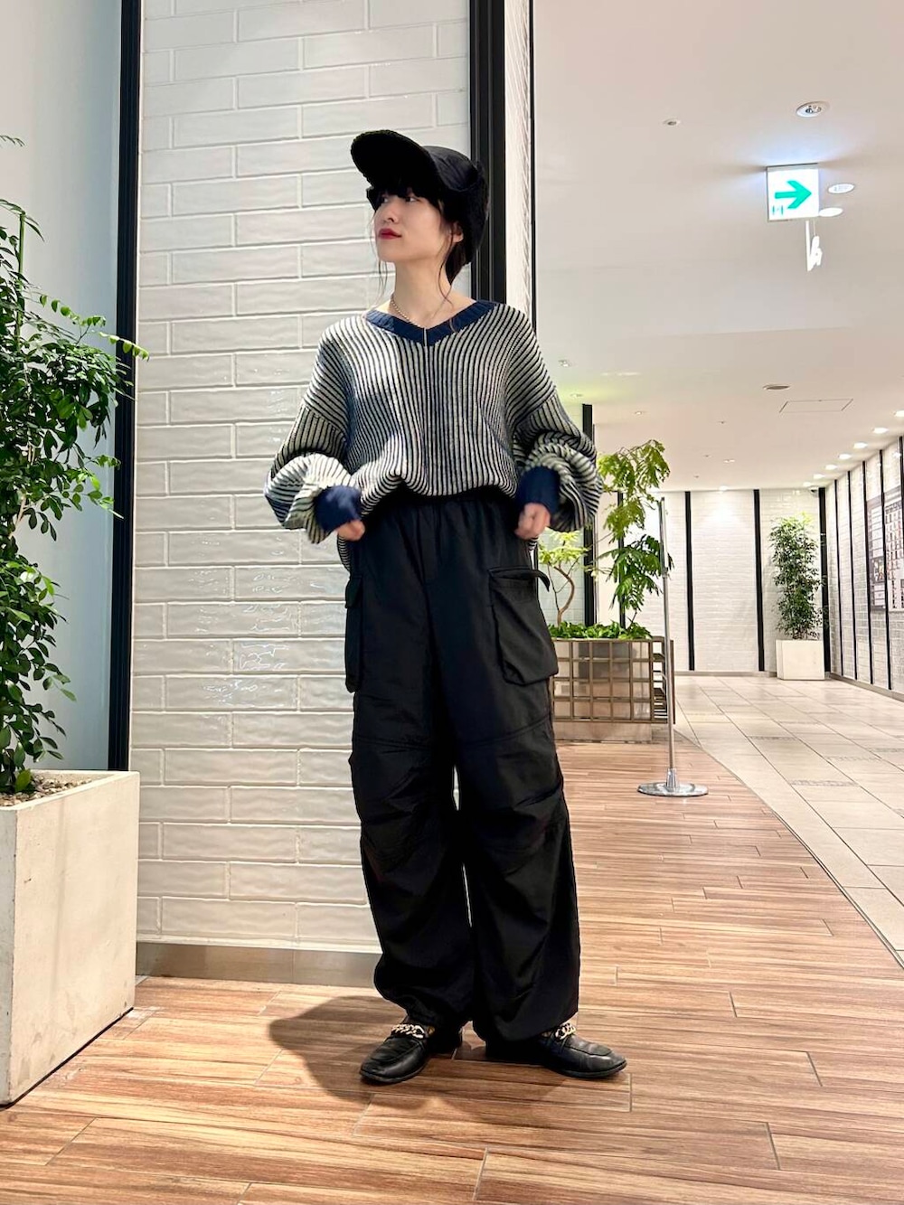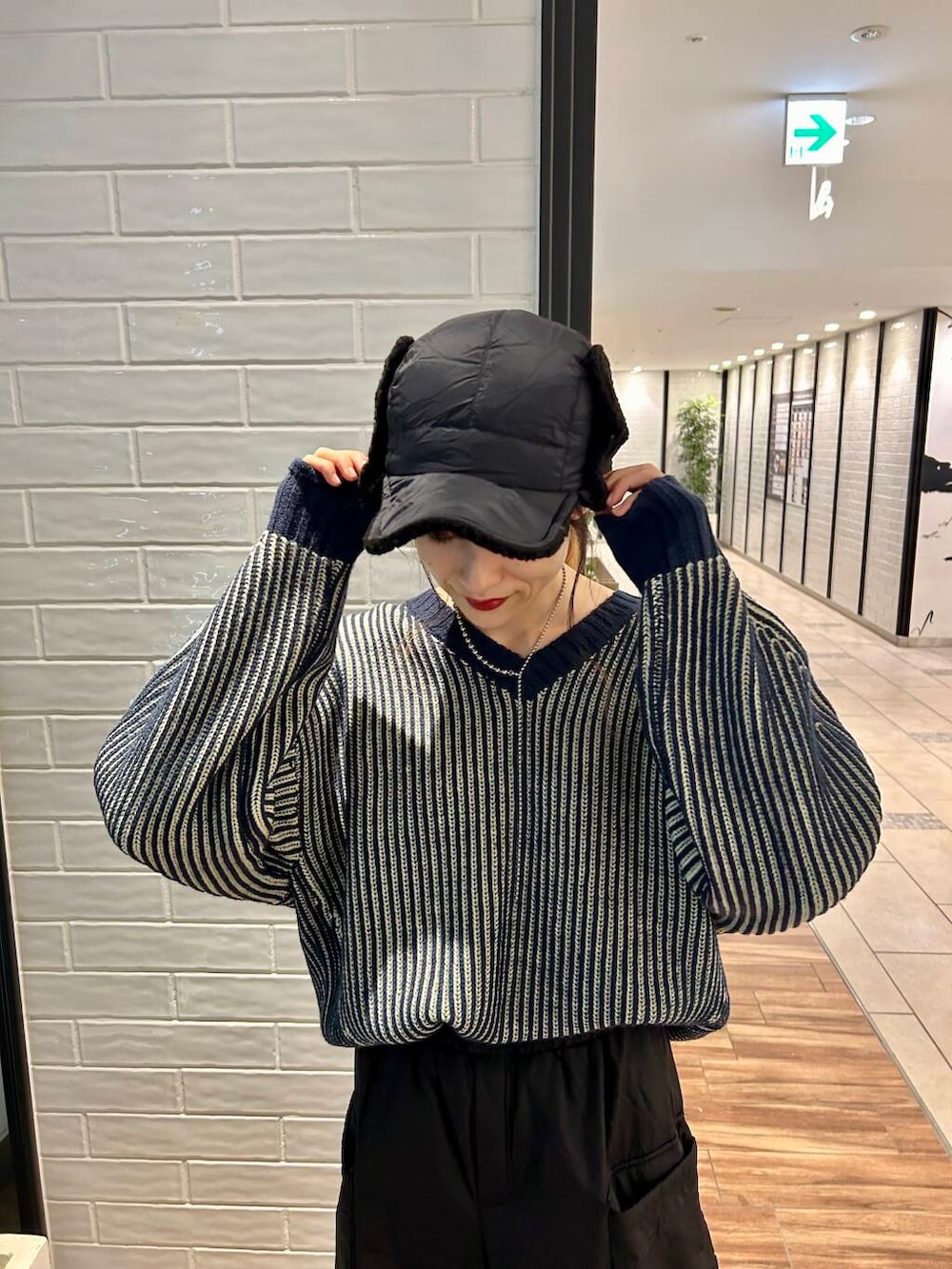ニットはオーバーサイズですが、首元がスッキリVネックなので、重たくみえず着回ししやすいです!