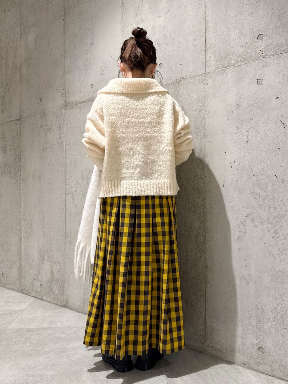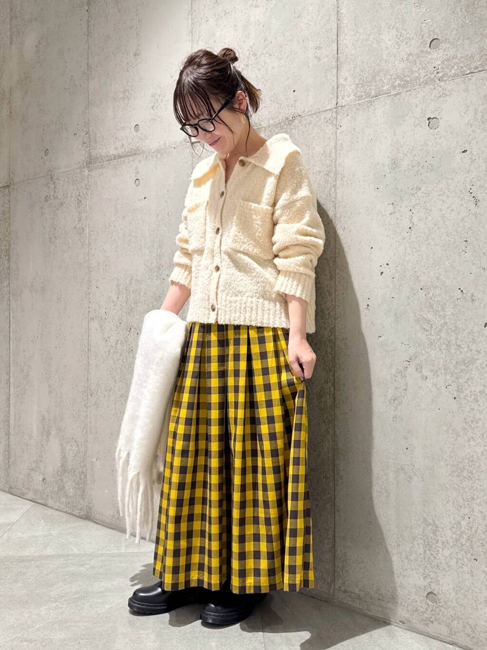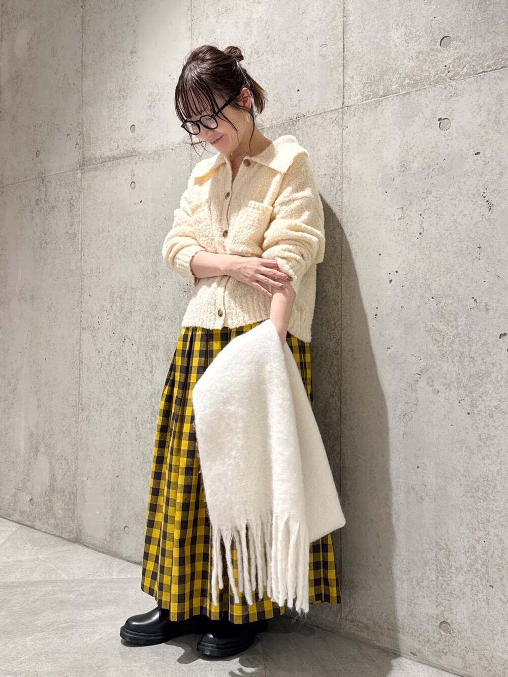 今回は、イエローのチェック柄スカートをアクセントにした、大人カジュアルコーディネートです。