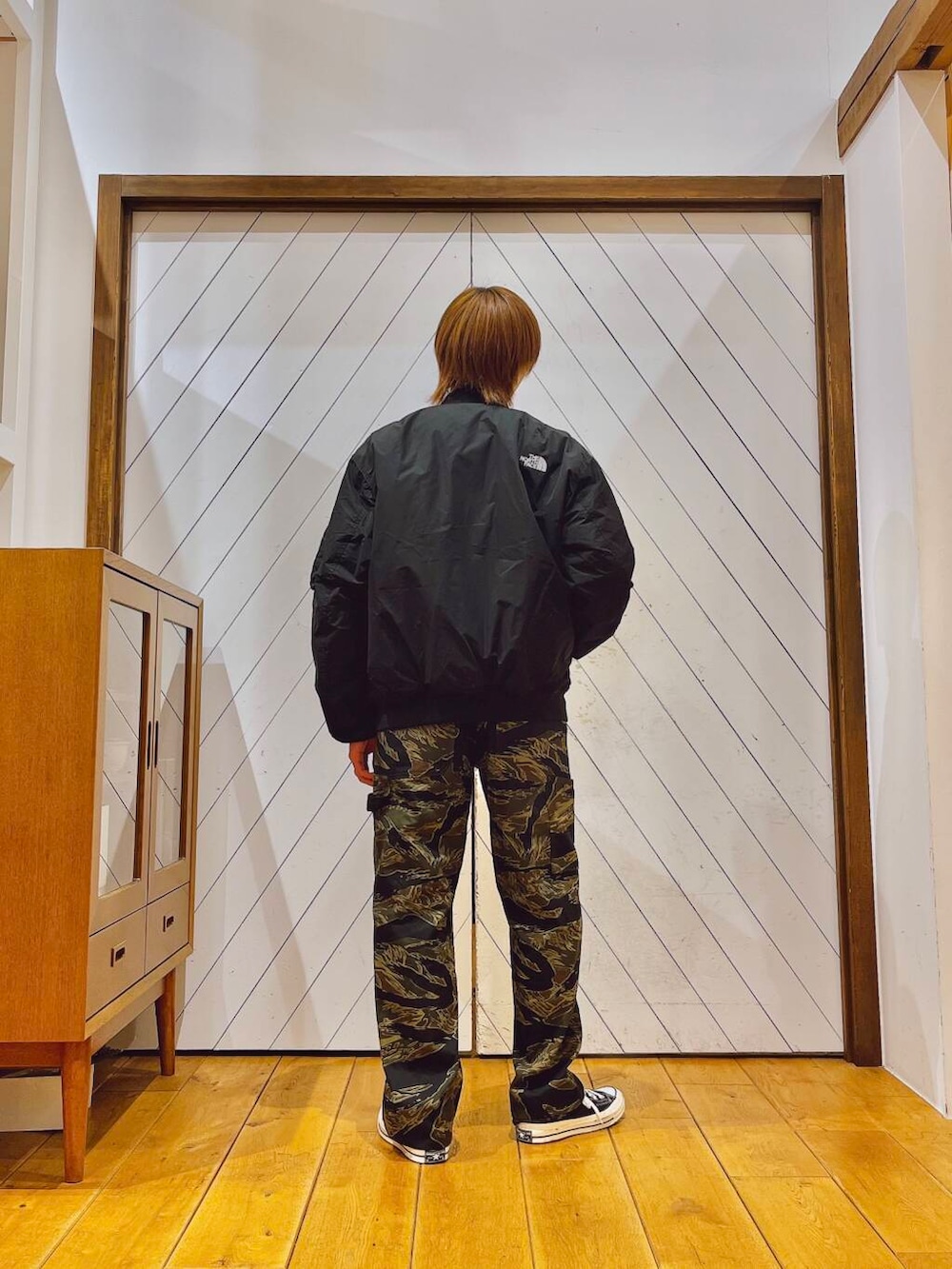 ノースフェイスのボンバージャケットはやや大きめのサイズ感で、様々なインナーやパンツと合わせていただけます。