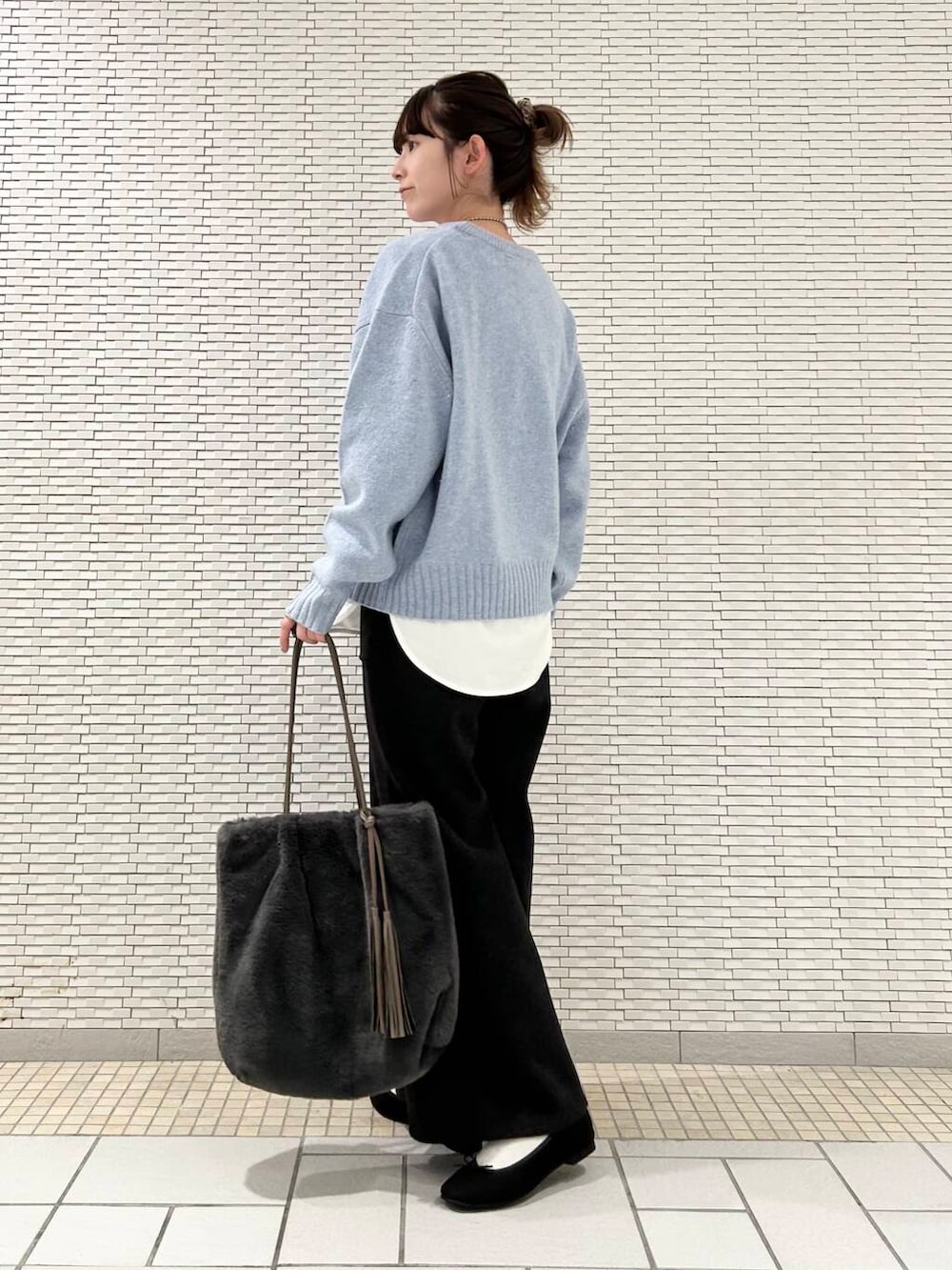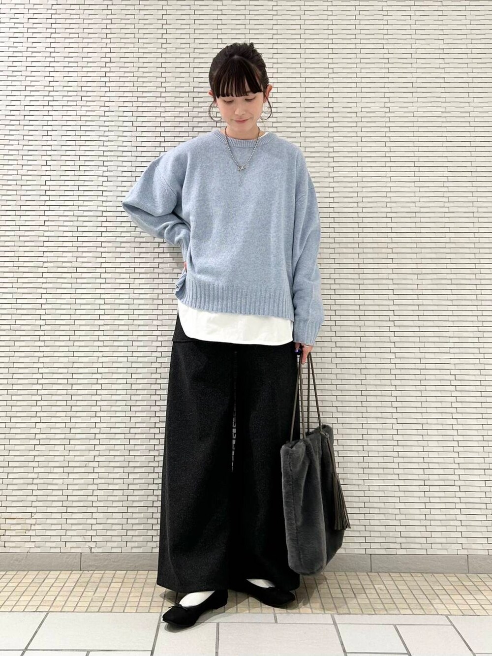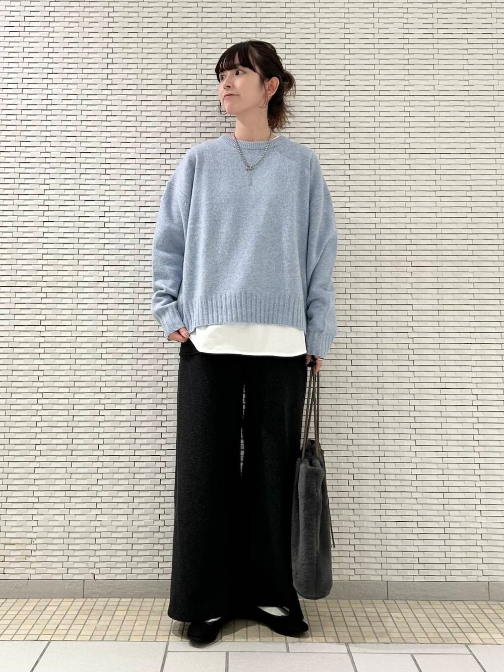 淡いブルーはボトムスのカラーは暗めでも明るめでも選ばないので、着回し力も抜群です!