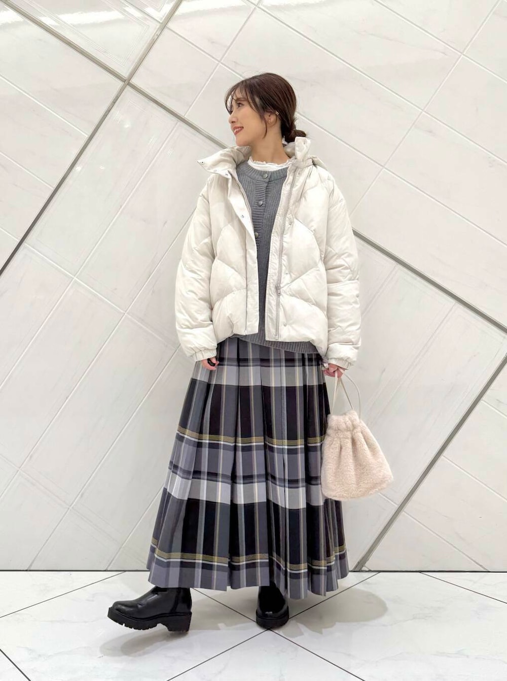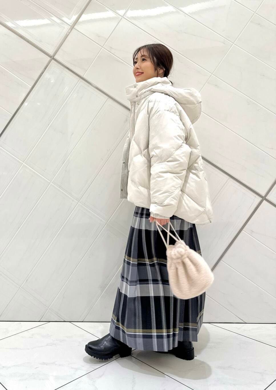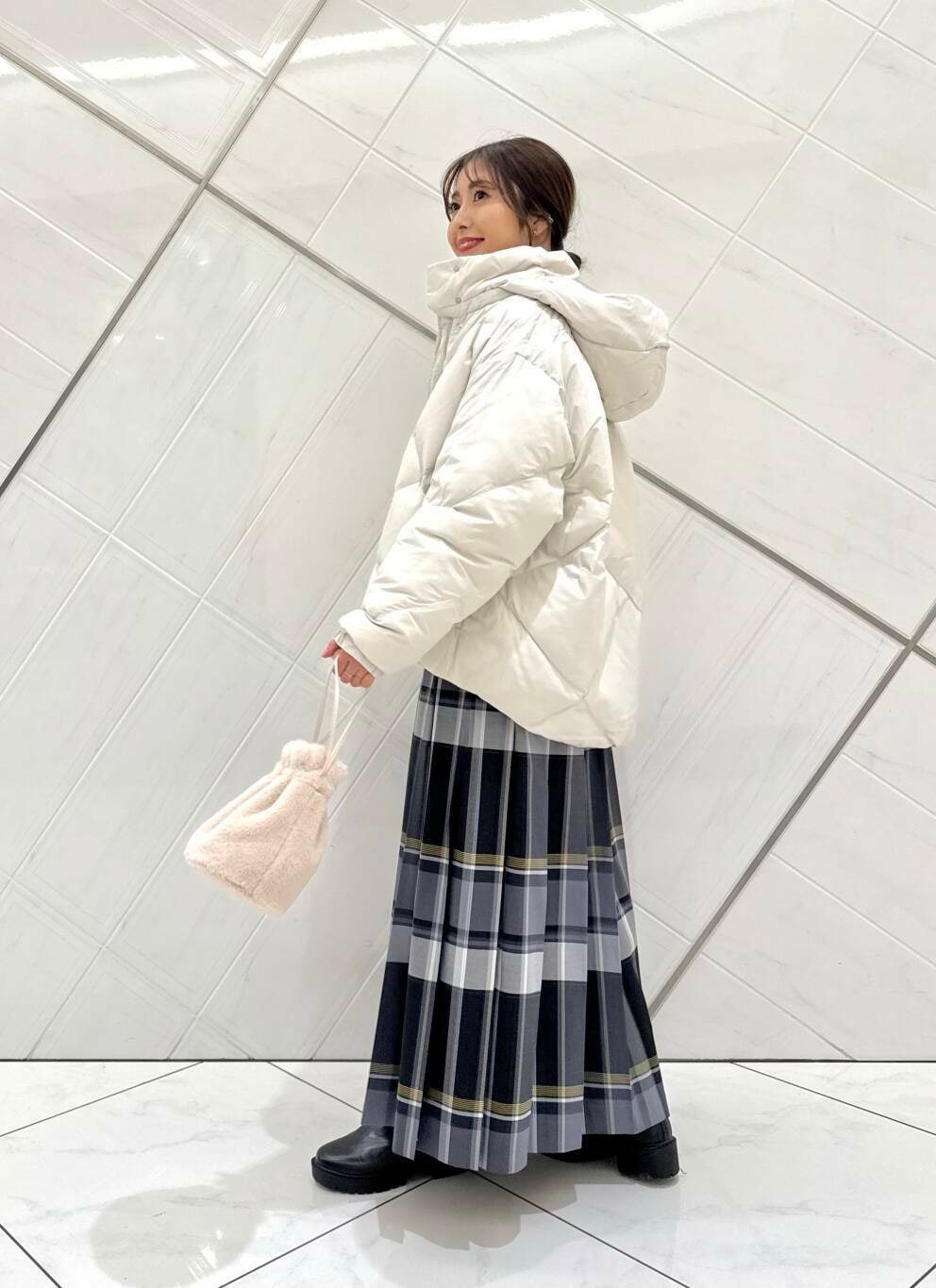 ダウンはふかふかでとても軽く、着心地抜群です。フードの取り外しができ、雰囲気を変えることができます。