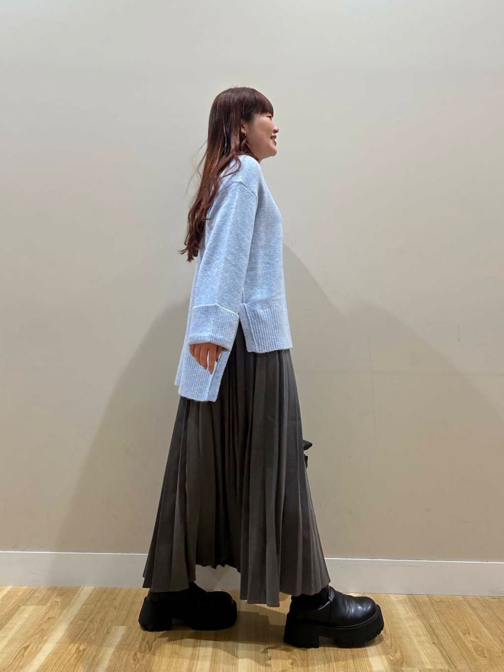 カラーがとっても綺麗なニットはふわふわな触り心地でチクチク感なく着用いただけます^^
