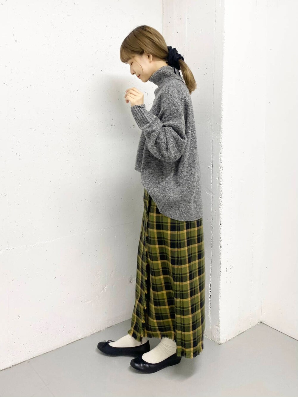 合わせているスカートも冬らしい要素がたっぷりで可愛いです◎