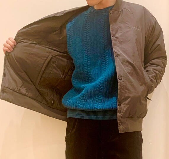 カラーはD.CHARCOALを着用です。まずリバーシブルで使えるところが面白いですね。裏側はキルティングアウターの様にして使えます。