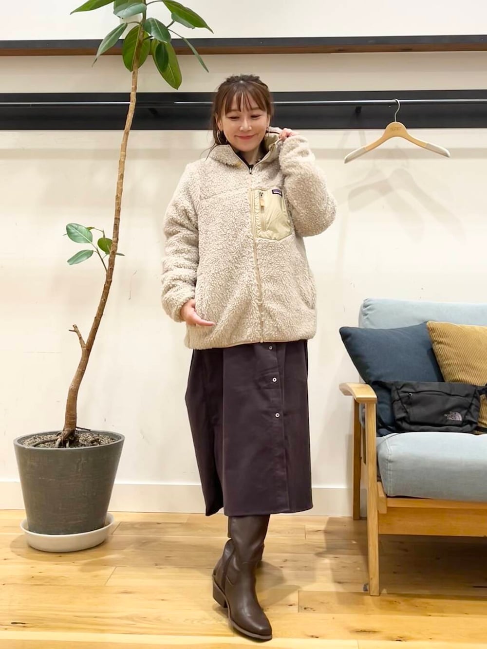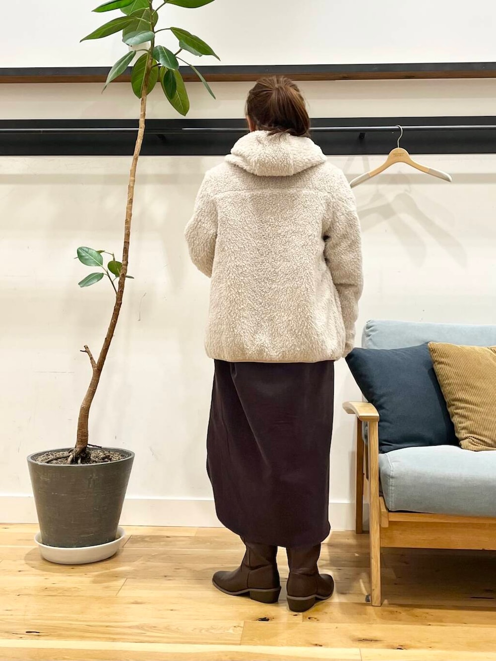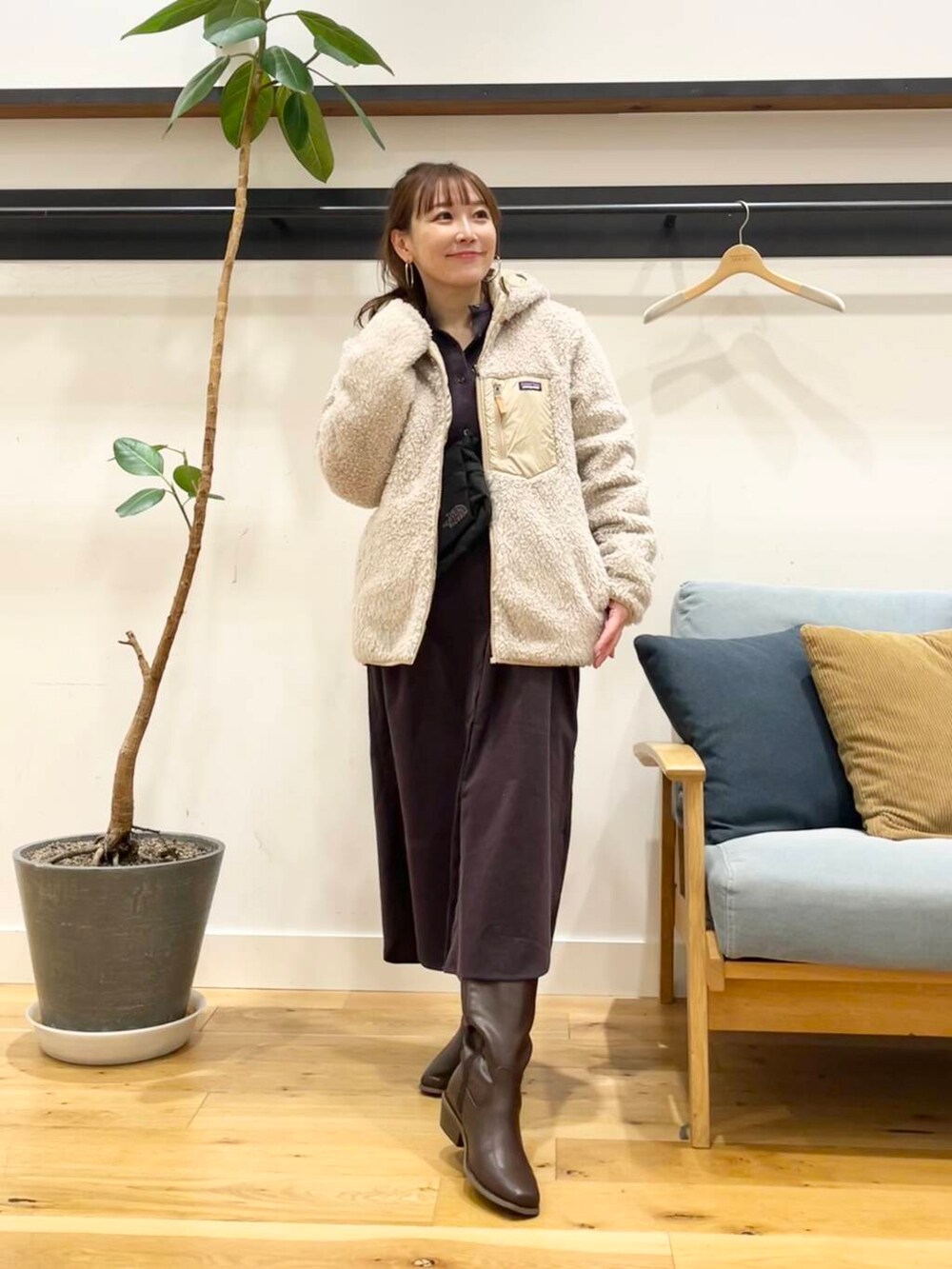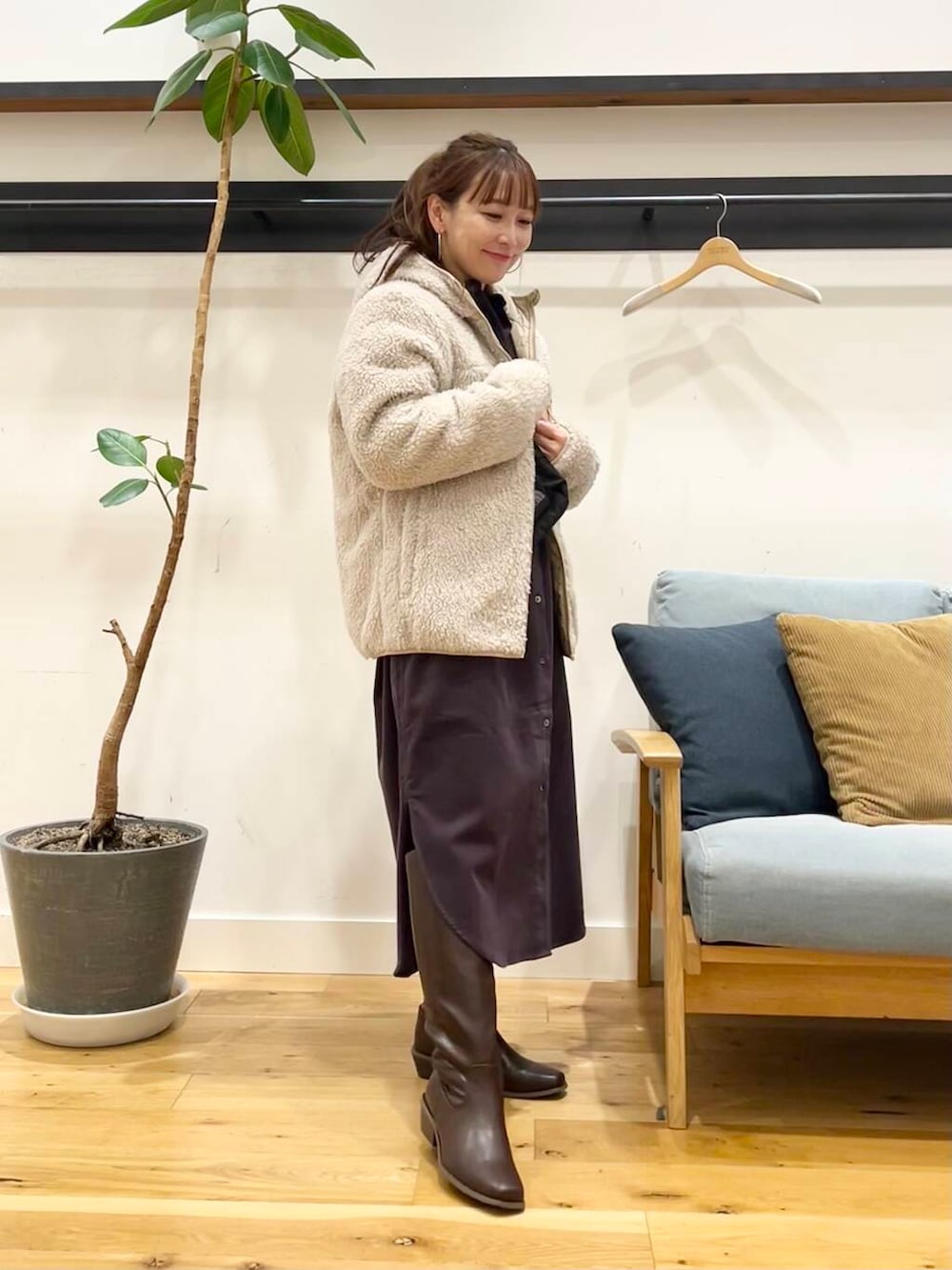 私はSサイズ前閉じで着て、ロングブーツと合わせてますが、サイドのスリットは結構深めに入ってるのでパンツ合わせにしても重くならずに着ていただけます◎