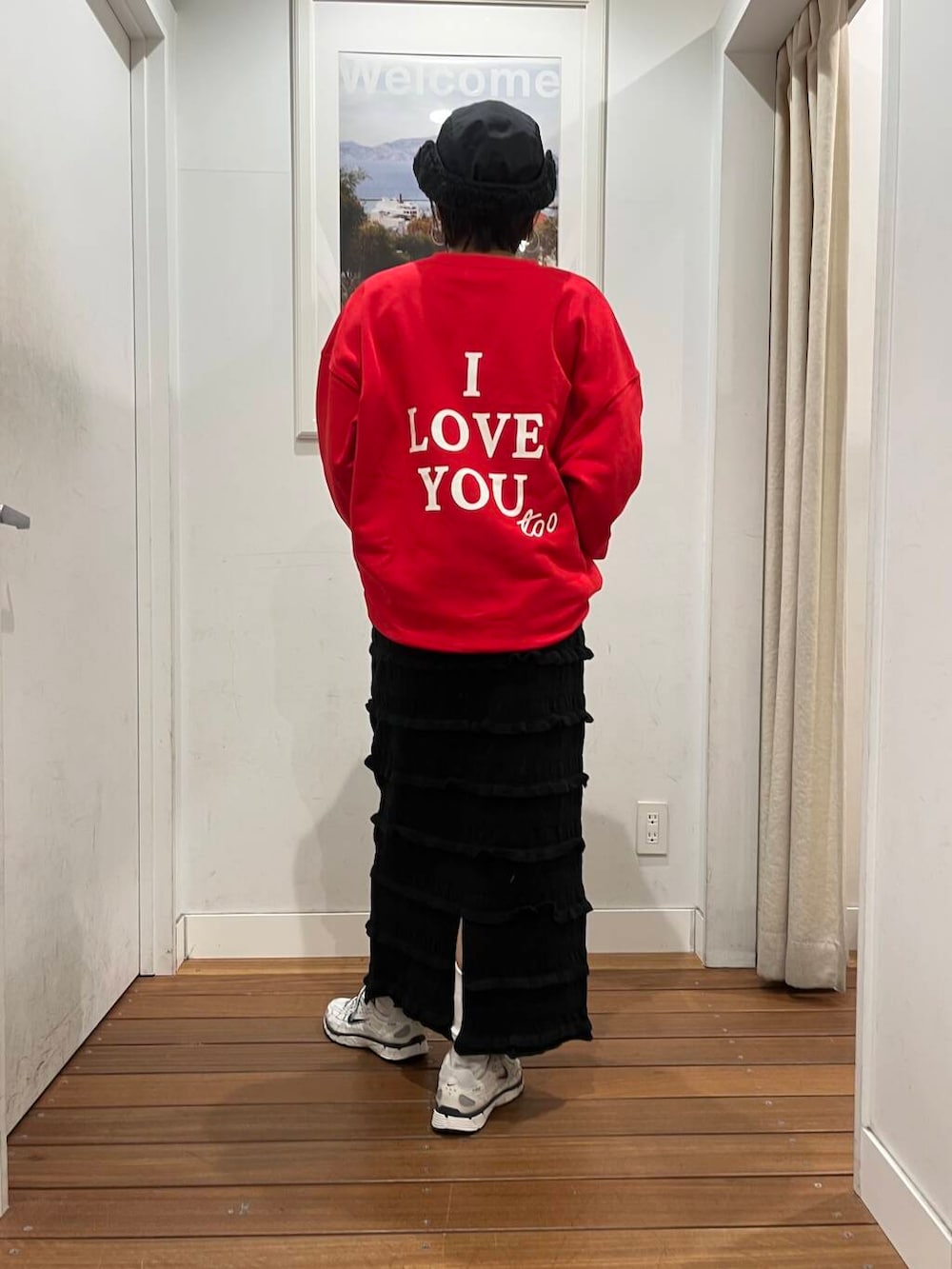 着用のi love youスウェットは、なんといってもシンプルなバックプリントがかわいい!!