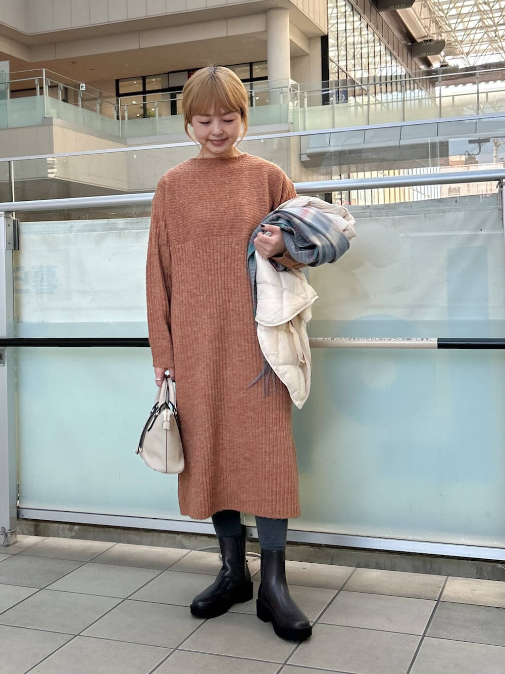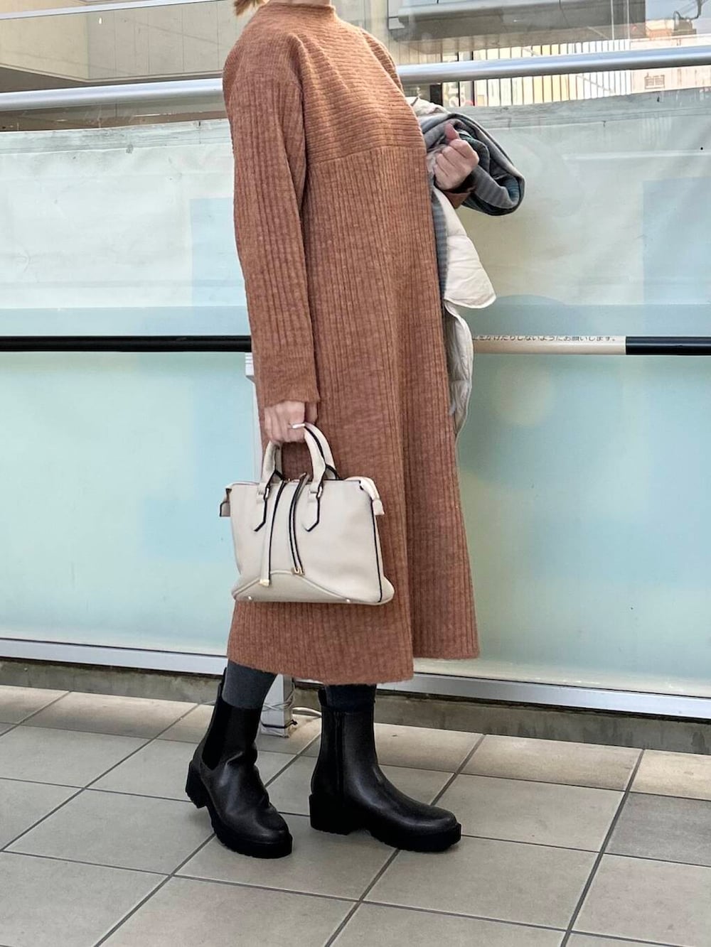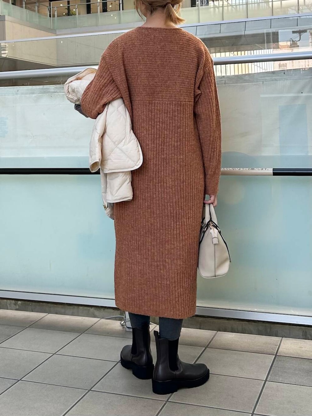 ニットワンピースは1枚でコーディネートが完成するので忙しい朝に楽ですね。