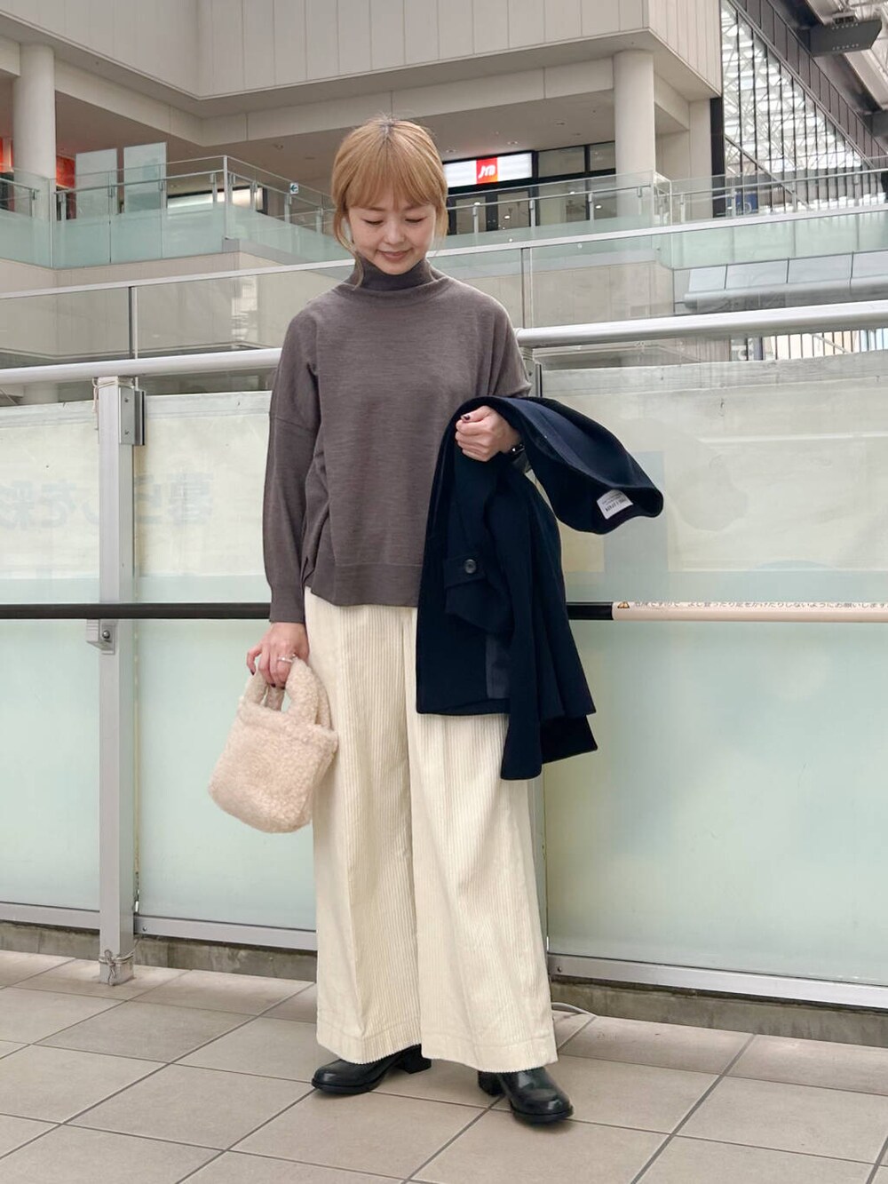コーデュロイのパンツはワイドシルエットでかっこよく履けます。