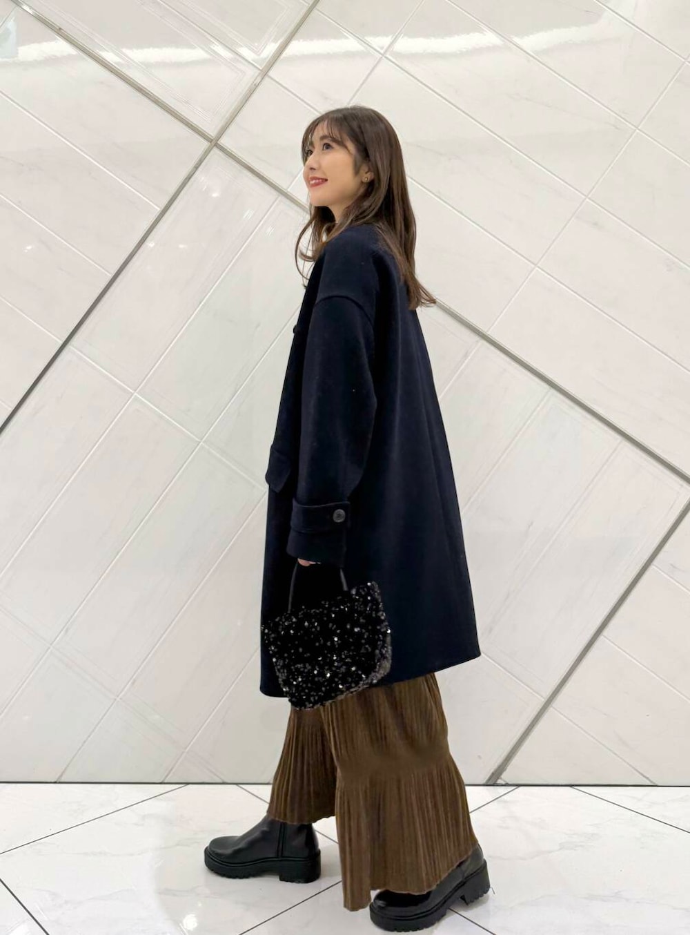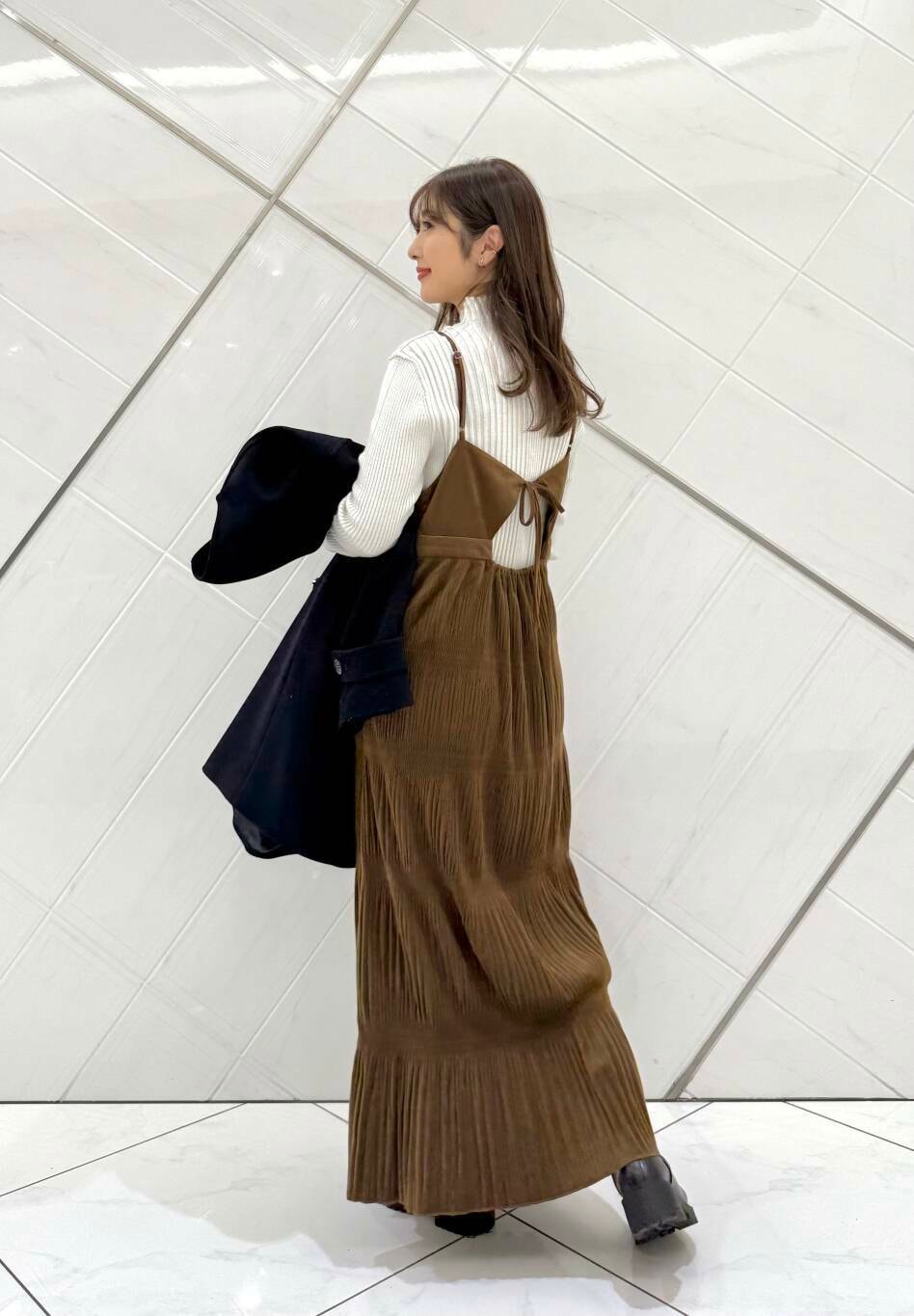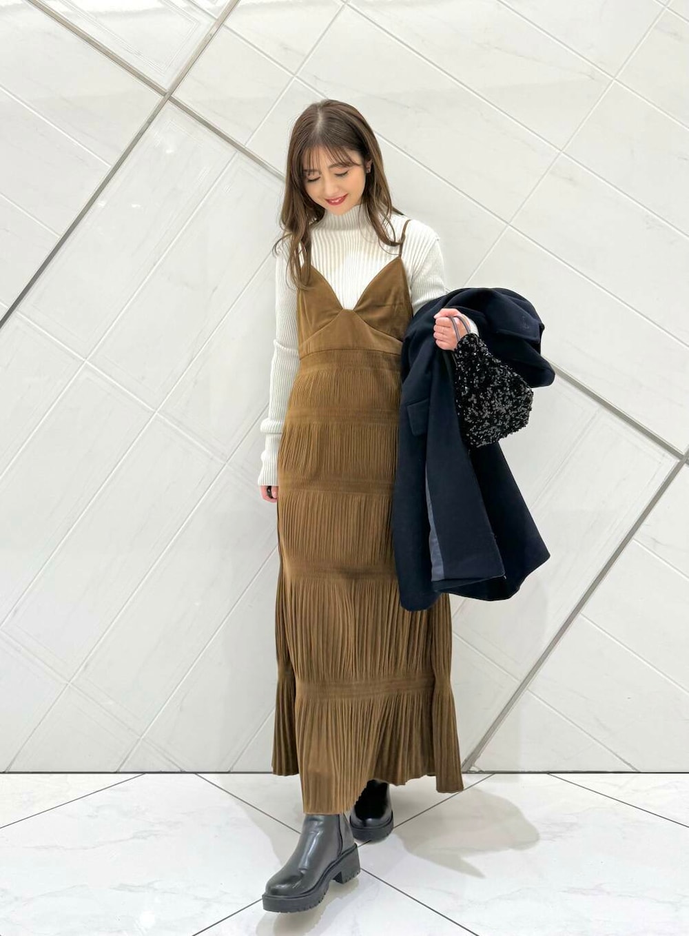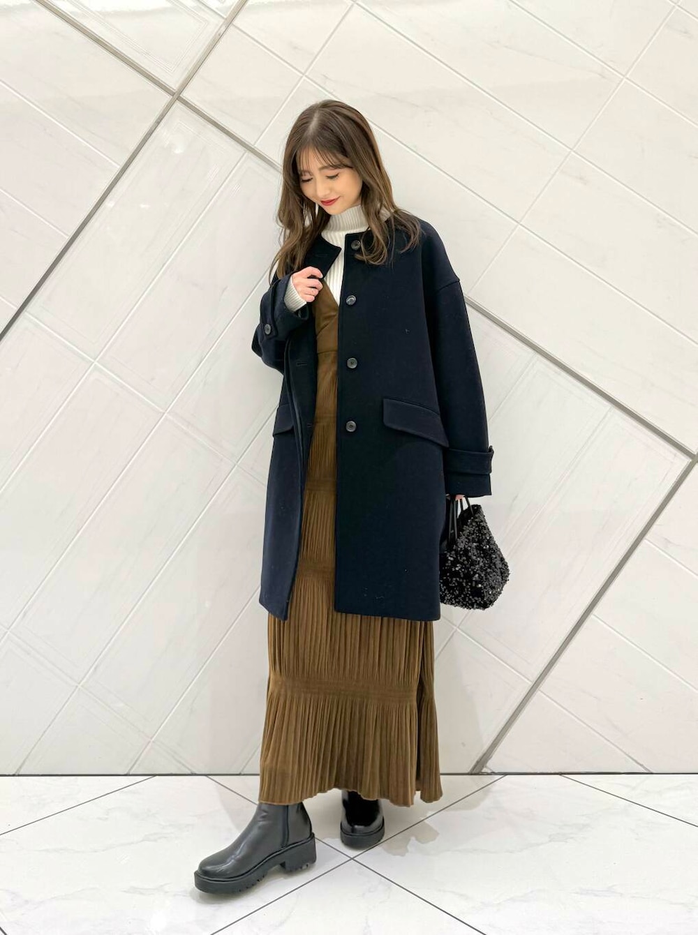 インナーはタイトなものが合わせやすく、今のシーズンだとタートルネックに合わせると可愛いです。
