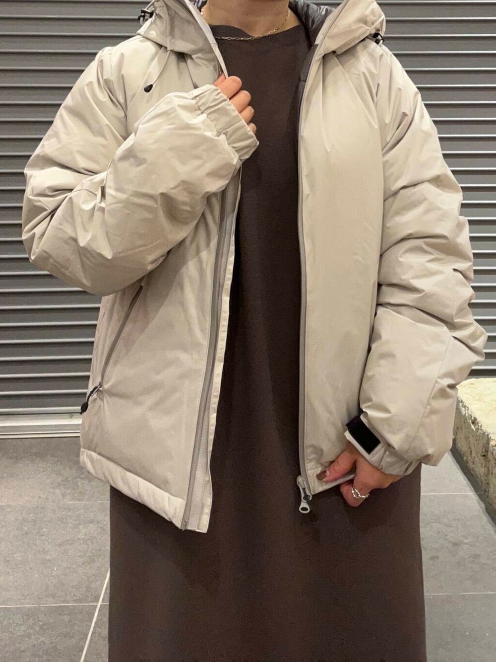 ダウンはとても軽く腰までしっかり隠れるので、防寒バッチリです!明るめなカラーも冬コーデのポイントに✨