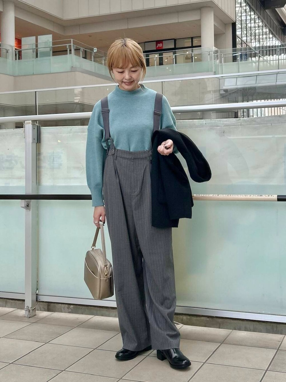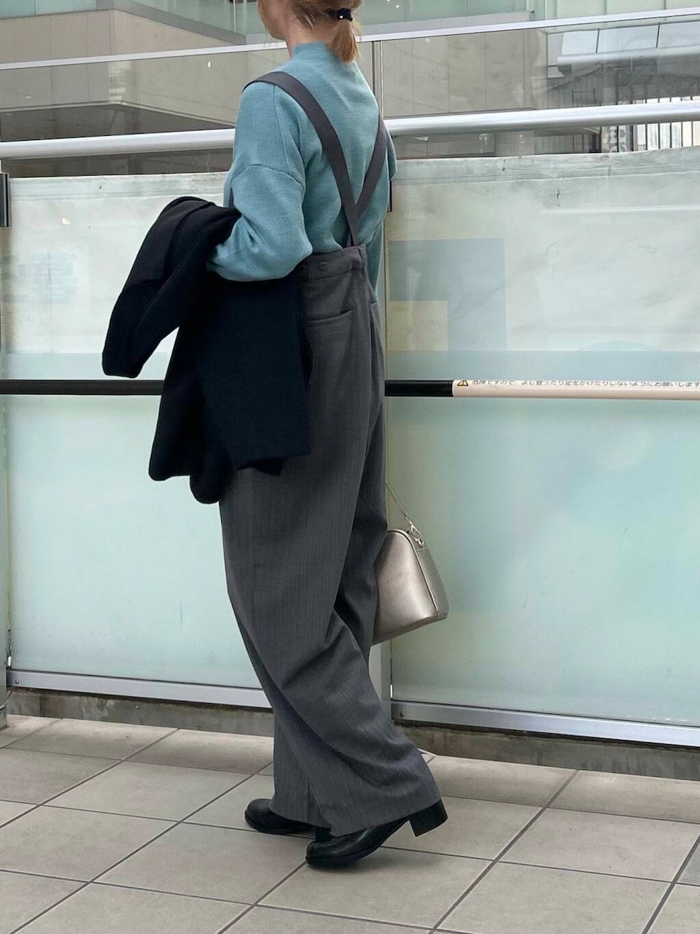 ボトムはカジュアルにサスペンダーパンツを合わせました。
