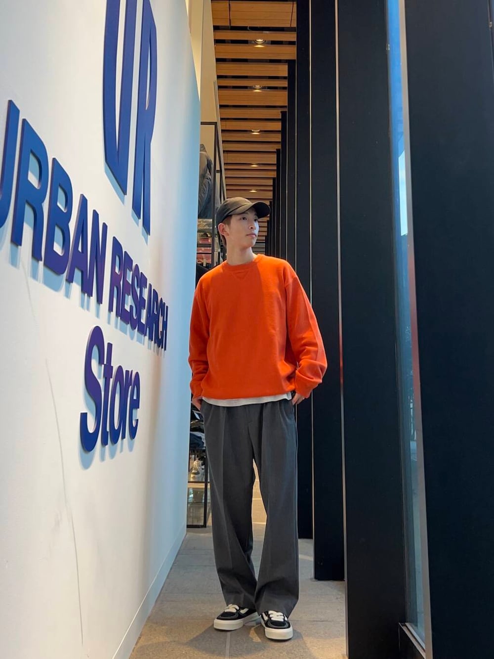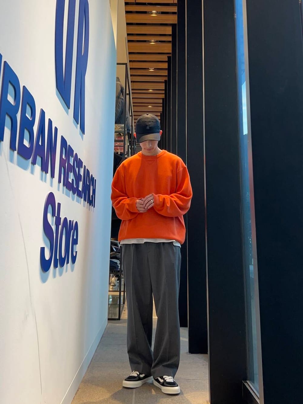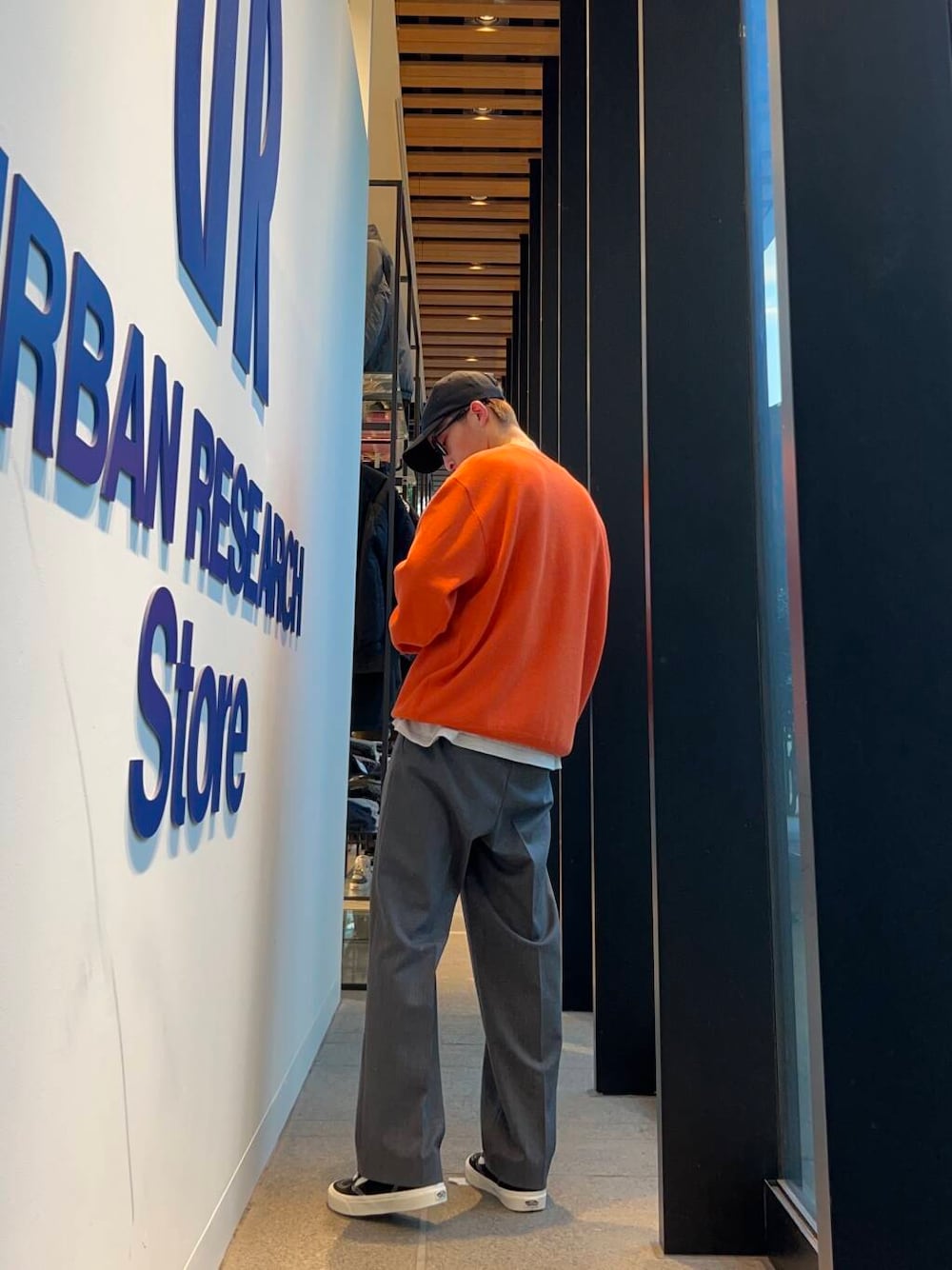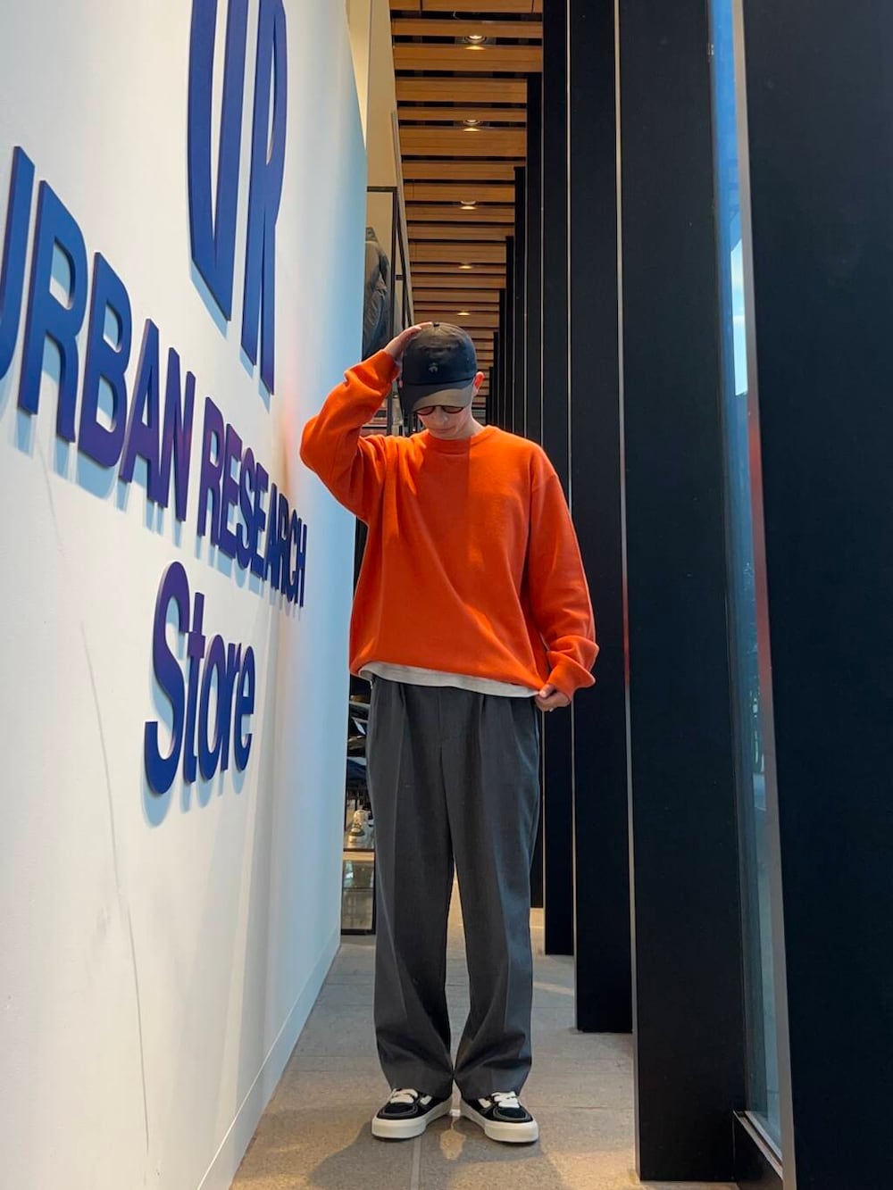 パンツはトップスがパキッとしたカラーとニット素材なので素材感を変えハリ感のある落ち着いた色味で大人な雰囲気プラス🙆🏻♂️