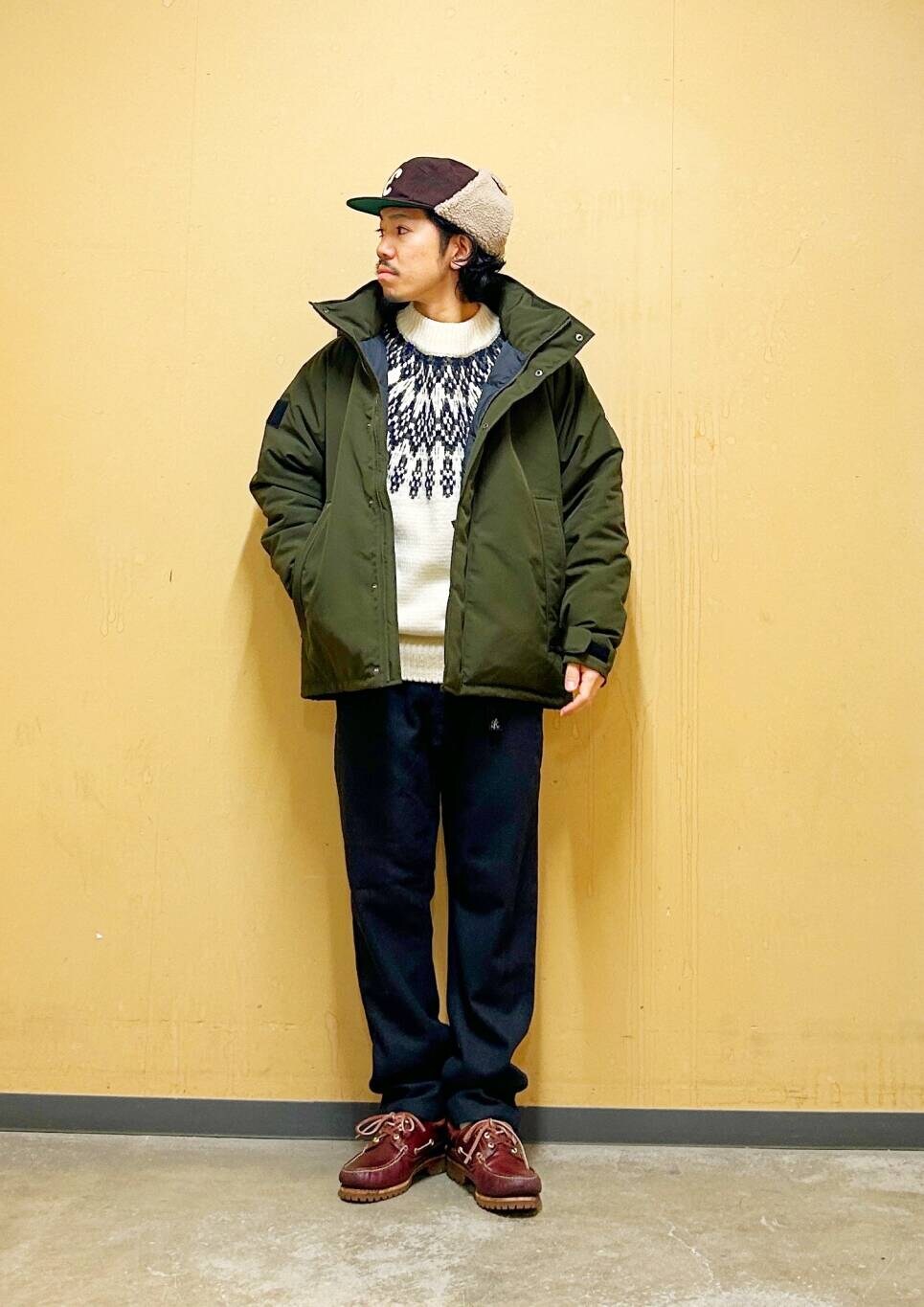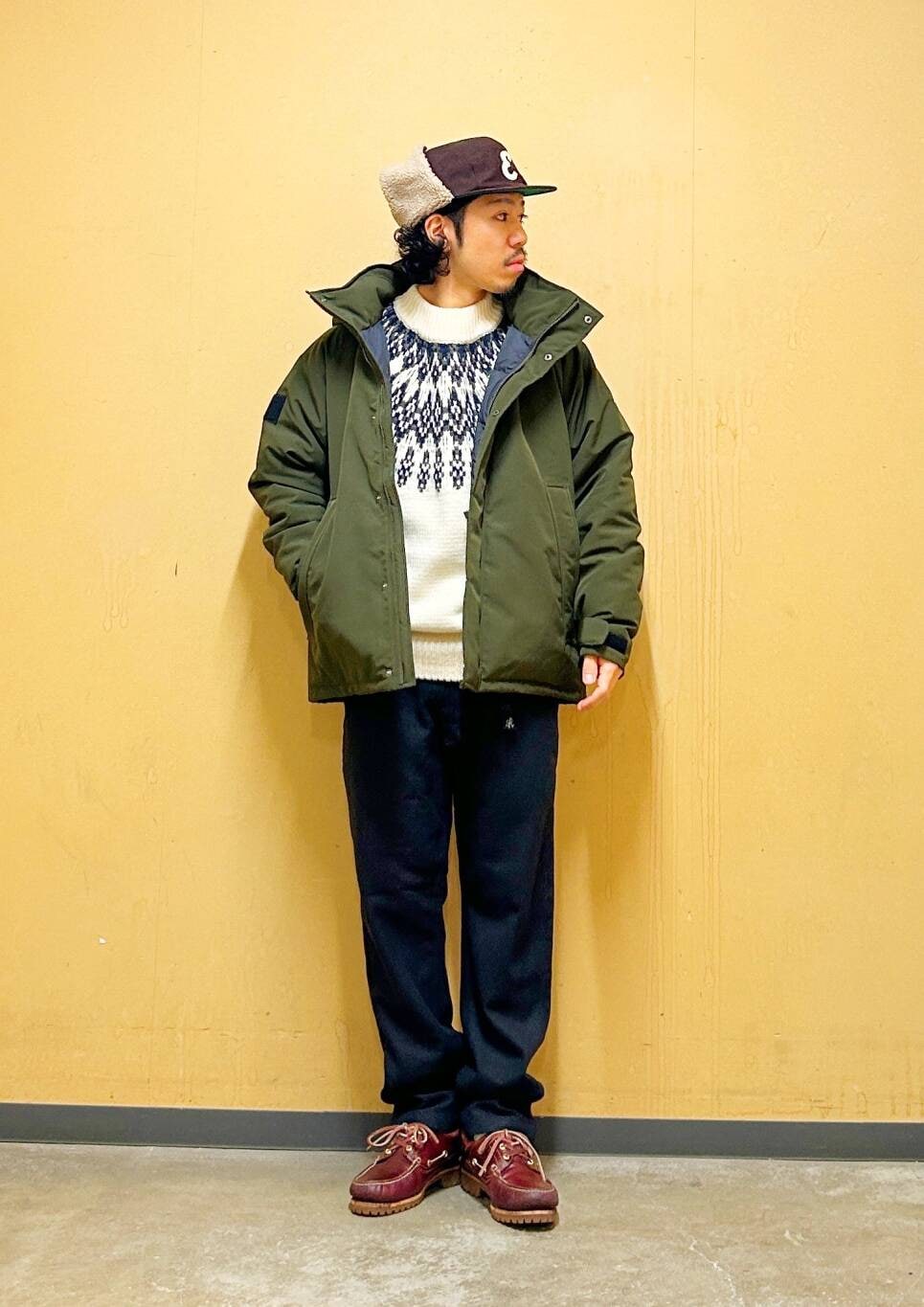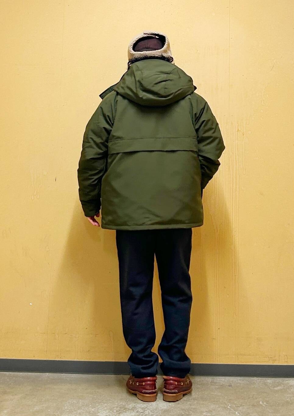今回はDANTON ARMY HOODED JACKETとグラミチ別注ウールライクトラウザーを使用したコーディネート。