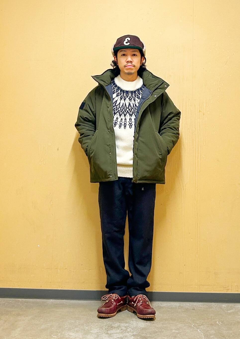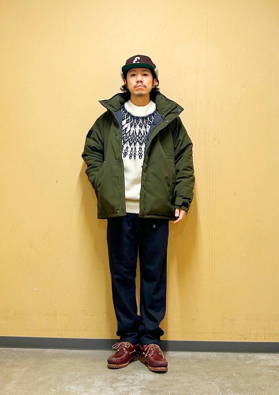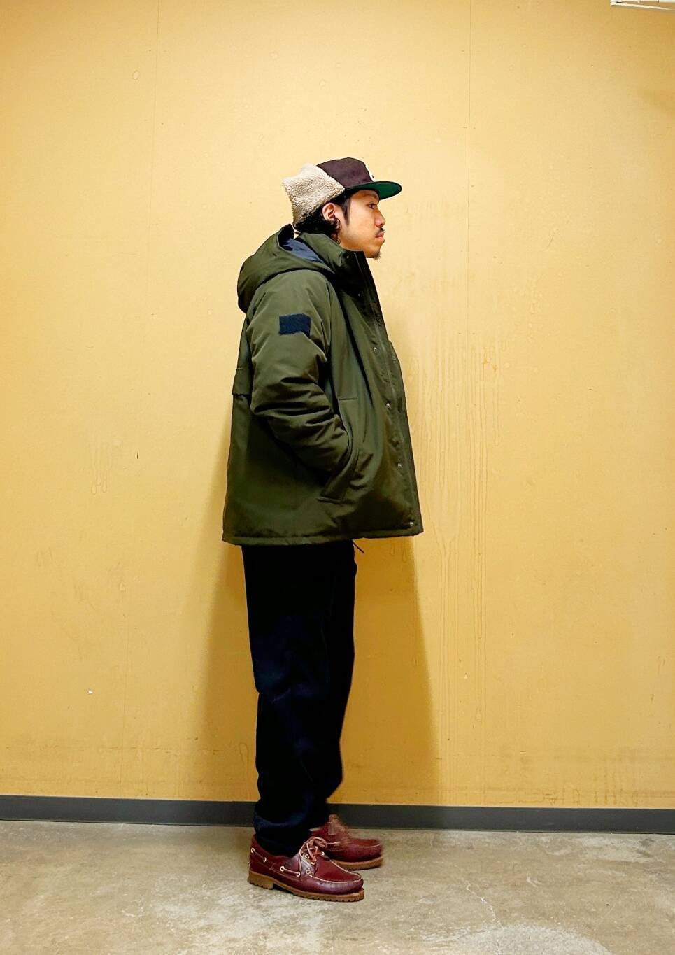 今回はDANTON ARMY HOODED JACKETとグラミチ別注ウールライクトラウザーを使用したコーディネート。