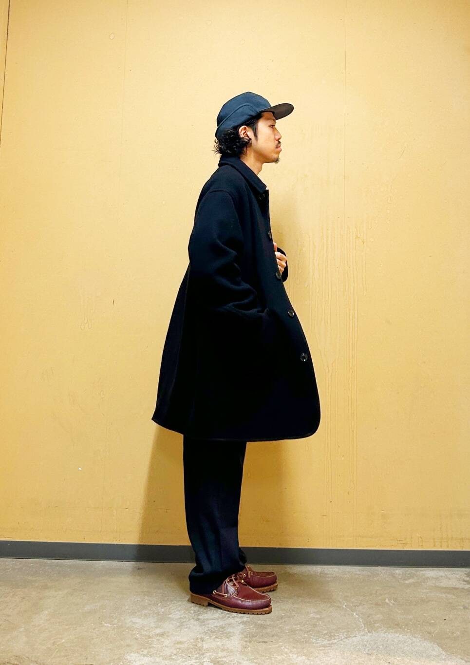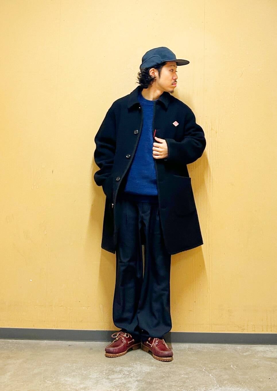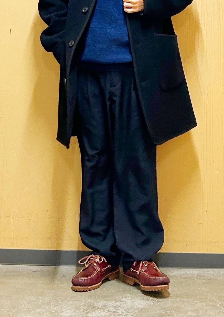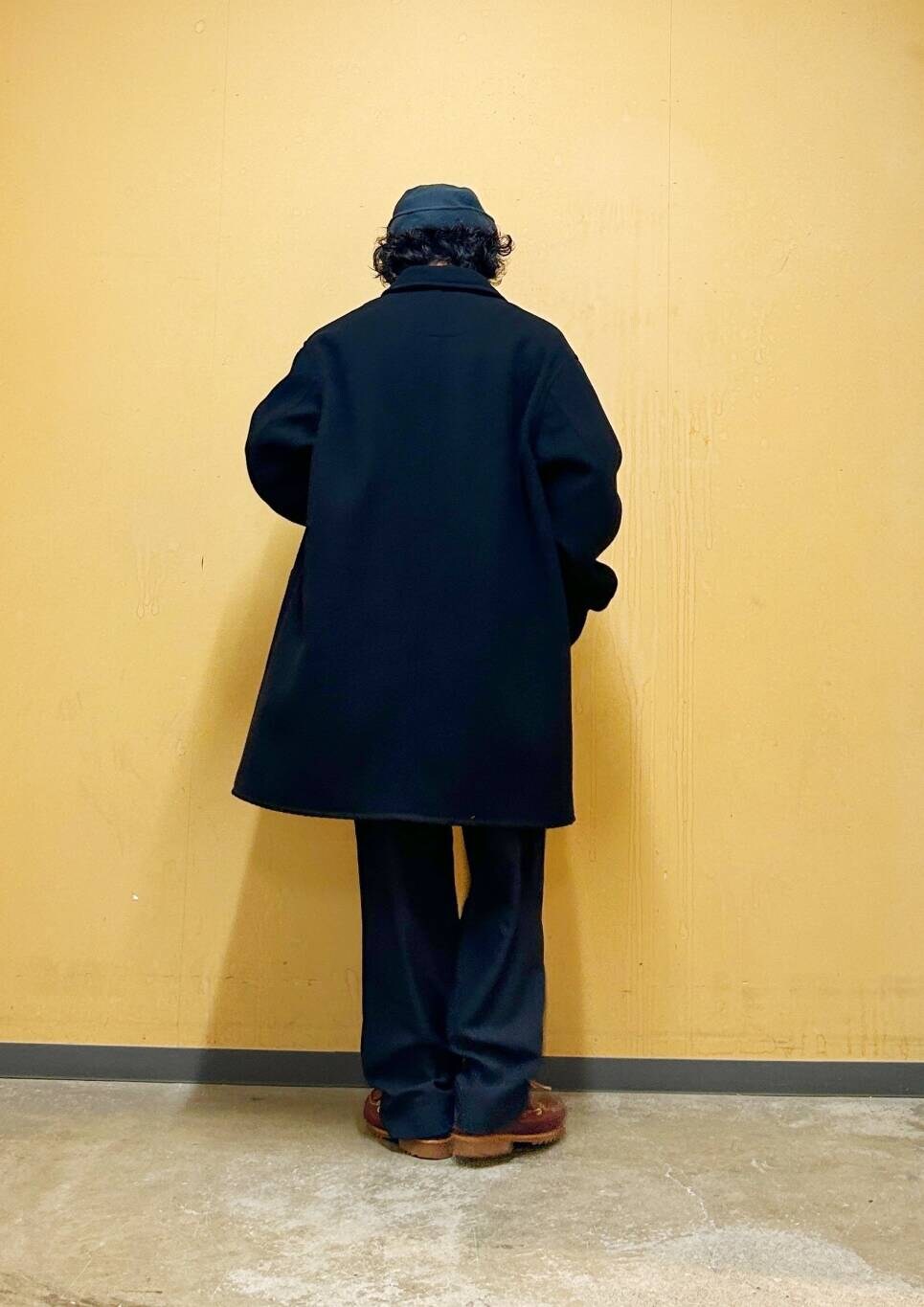 今回はDANTONカバーオールコートとツータックトラウザーを使用したコーディネート。