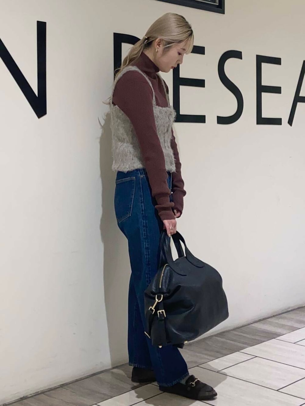 カバンはサイズの緒説が効きますし、足元はジーンズ&ぺったんこで歩きやすいです!