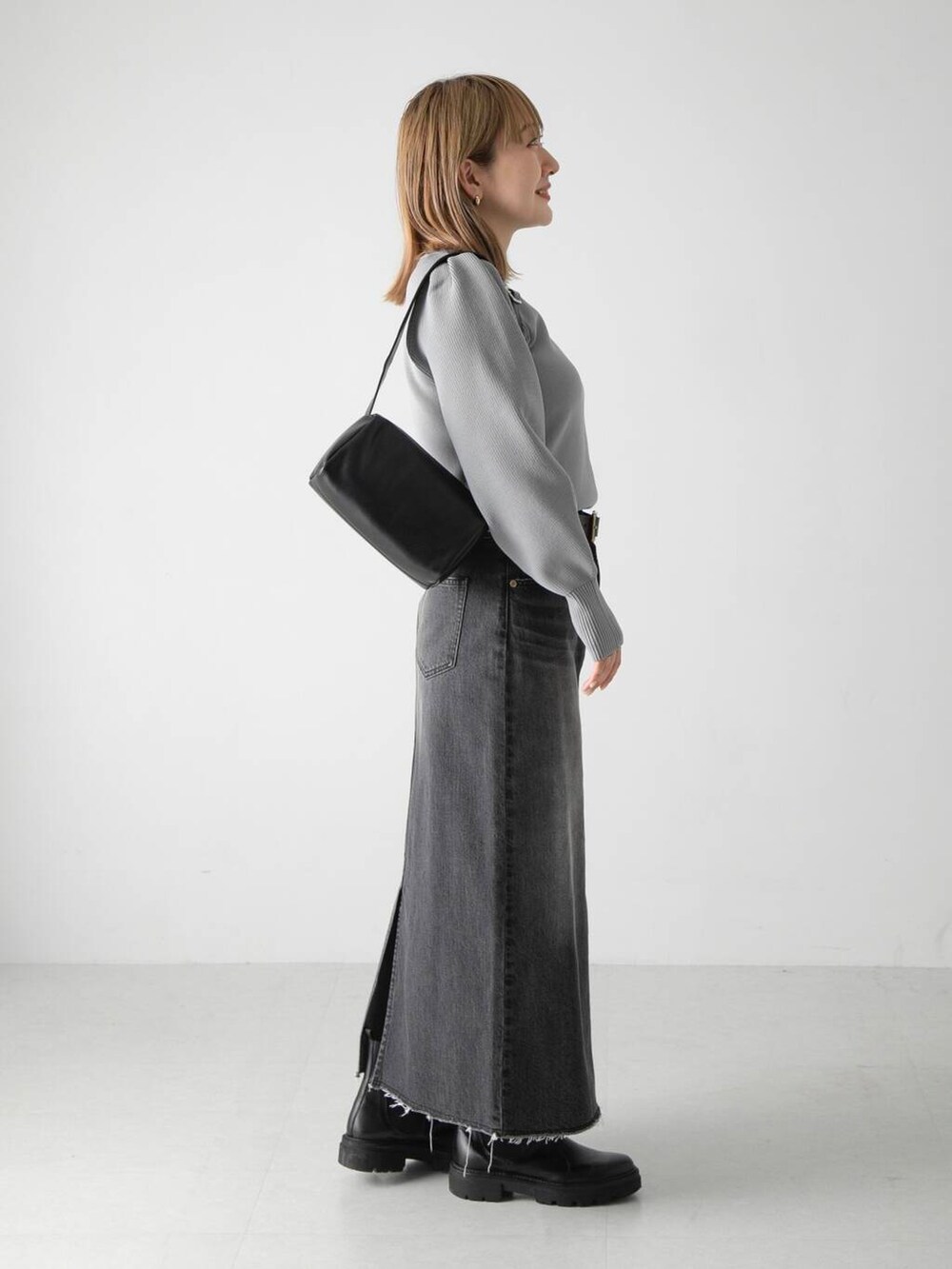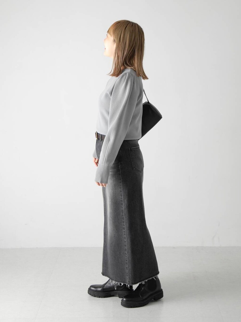 甘いデザインなので、ボトムはブラックデニムでバランスを取りました◎