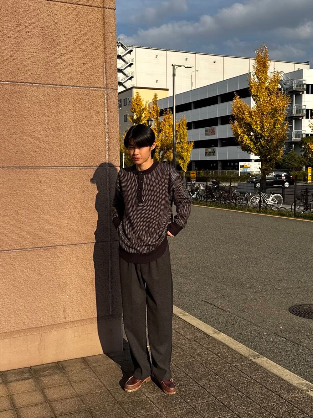 今回のコーディネートはヘンリーネックのバーズアイニットに静電気防止ウールタッチスラックスを合わせたコーデです!ニットはこれからの季節ジャケットのインナーとして活躍するのでとてもおすすめです!スラックスはシルエットも履き心地も良くおすすめです!ぜひ参考にしてください!