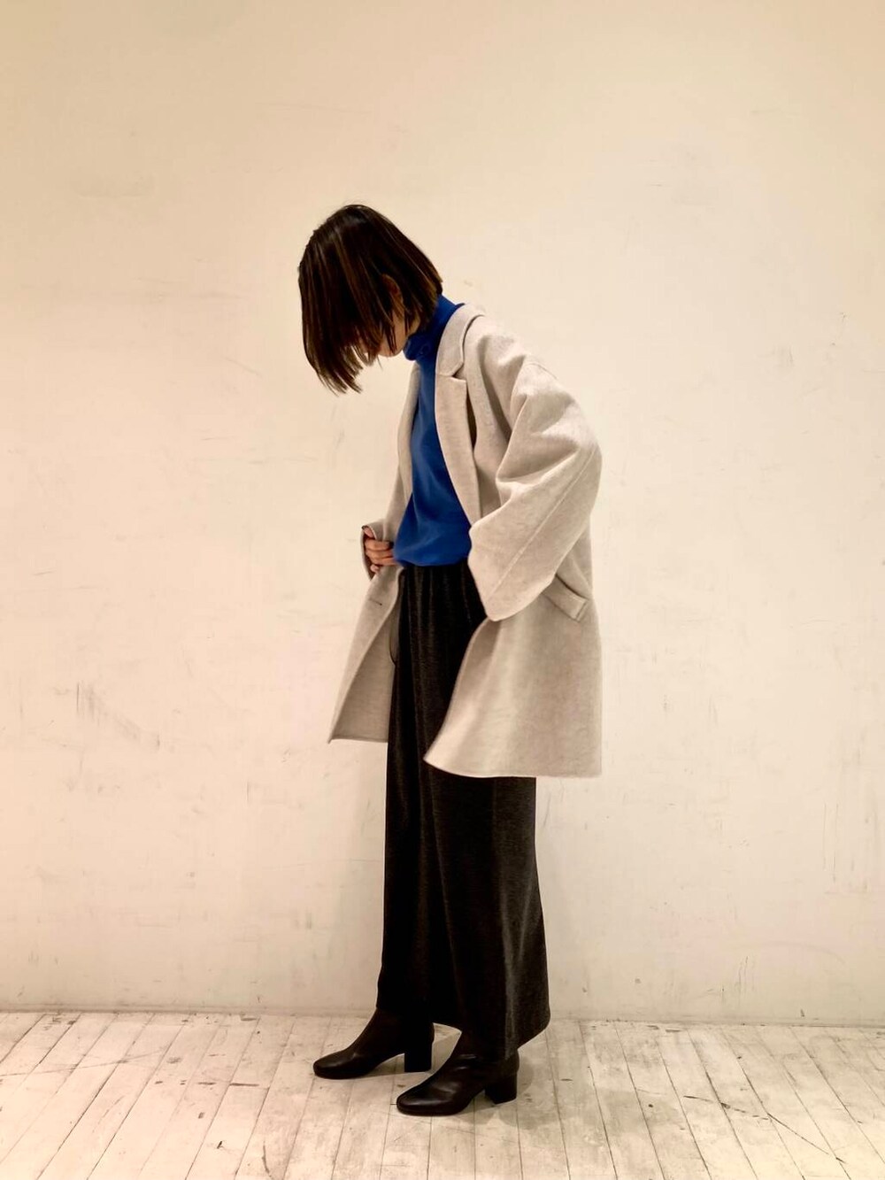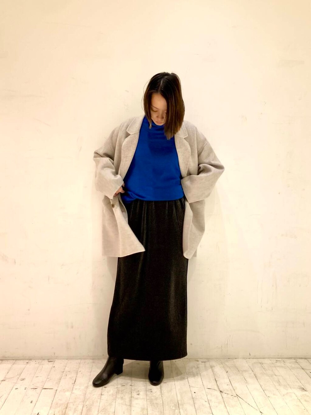 ブルーのニットがとってもホリデー気分にさせてくれるお出掛けコーデに仕上げました♪