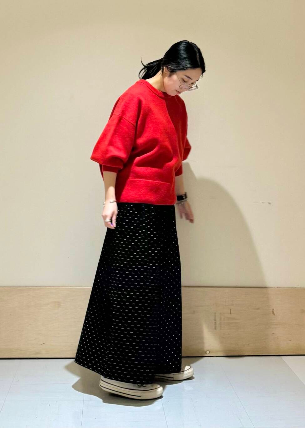 スカートの様なワイドパンツが甘すぎず、がジュアルに着やすい一枚です!