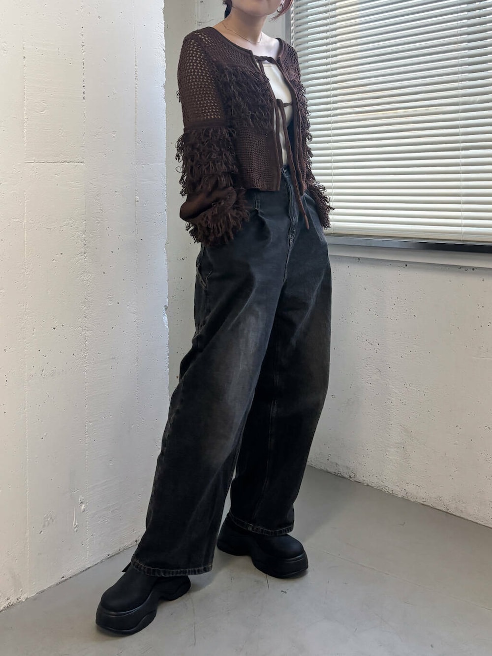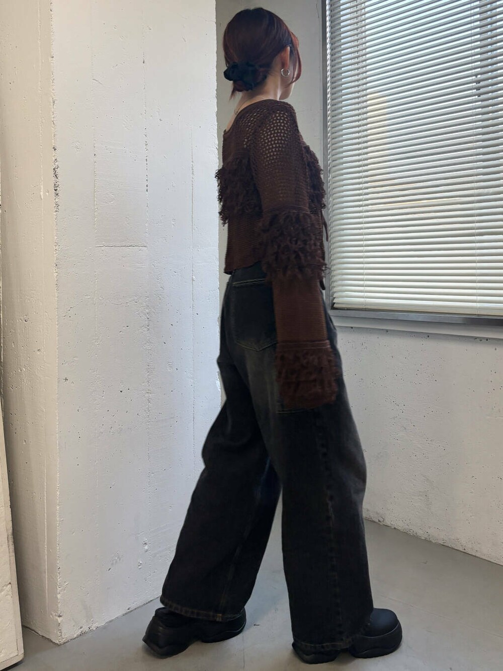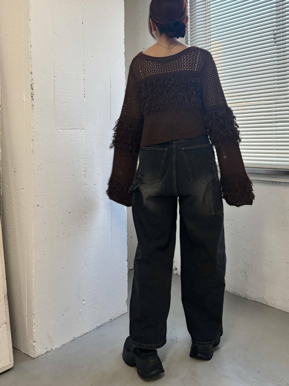 メッシュ編み、畦編み、ループ編みがMIXされたニット