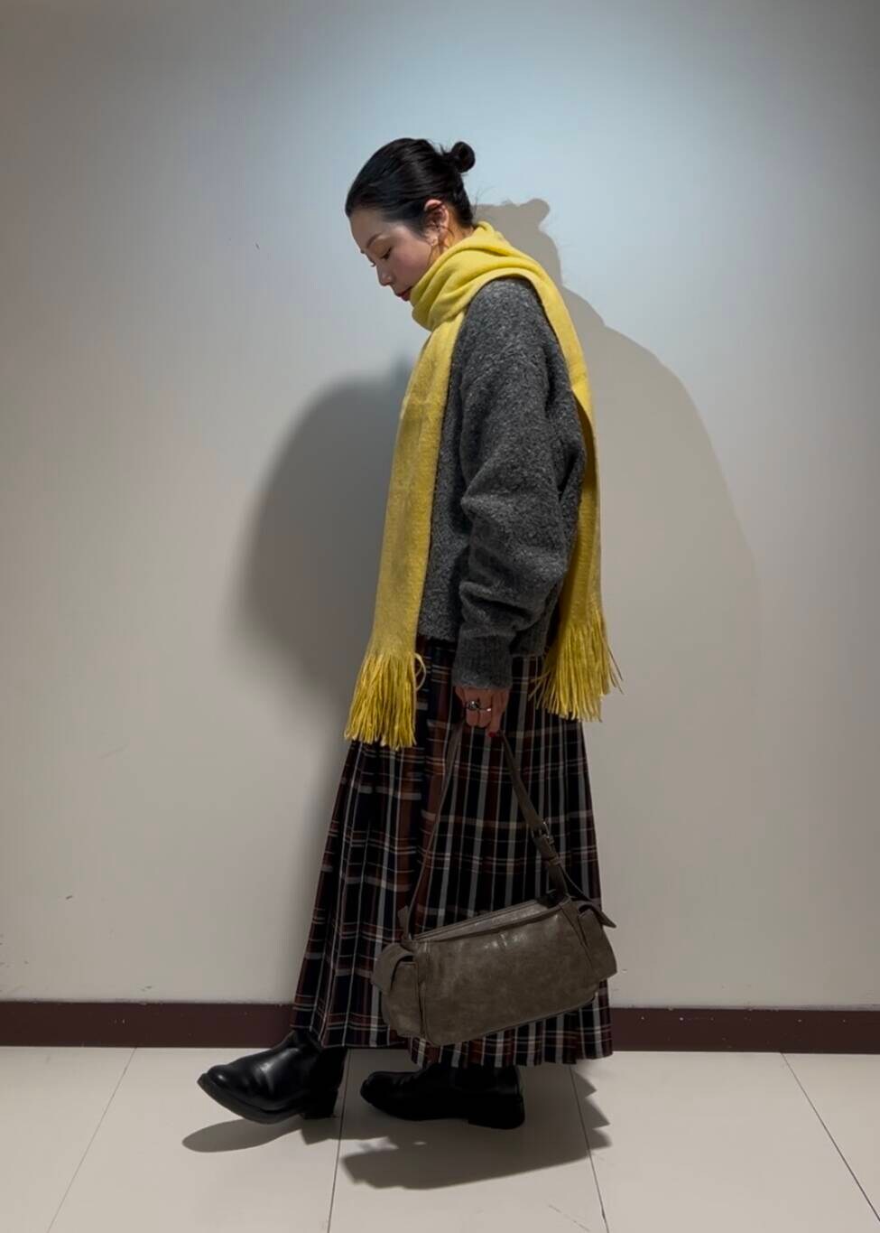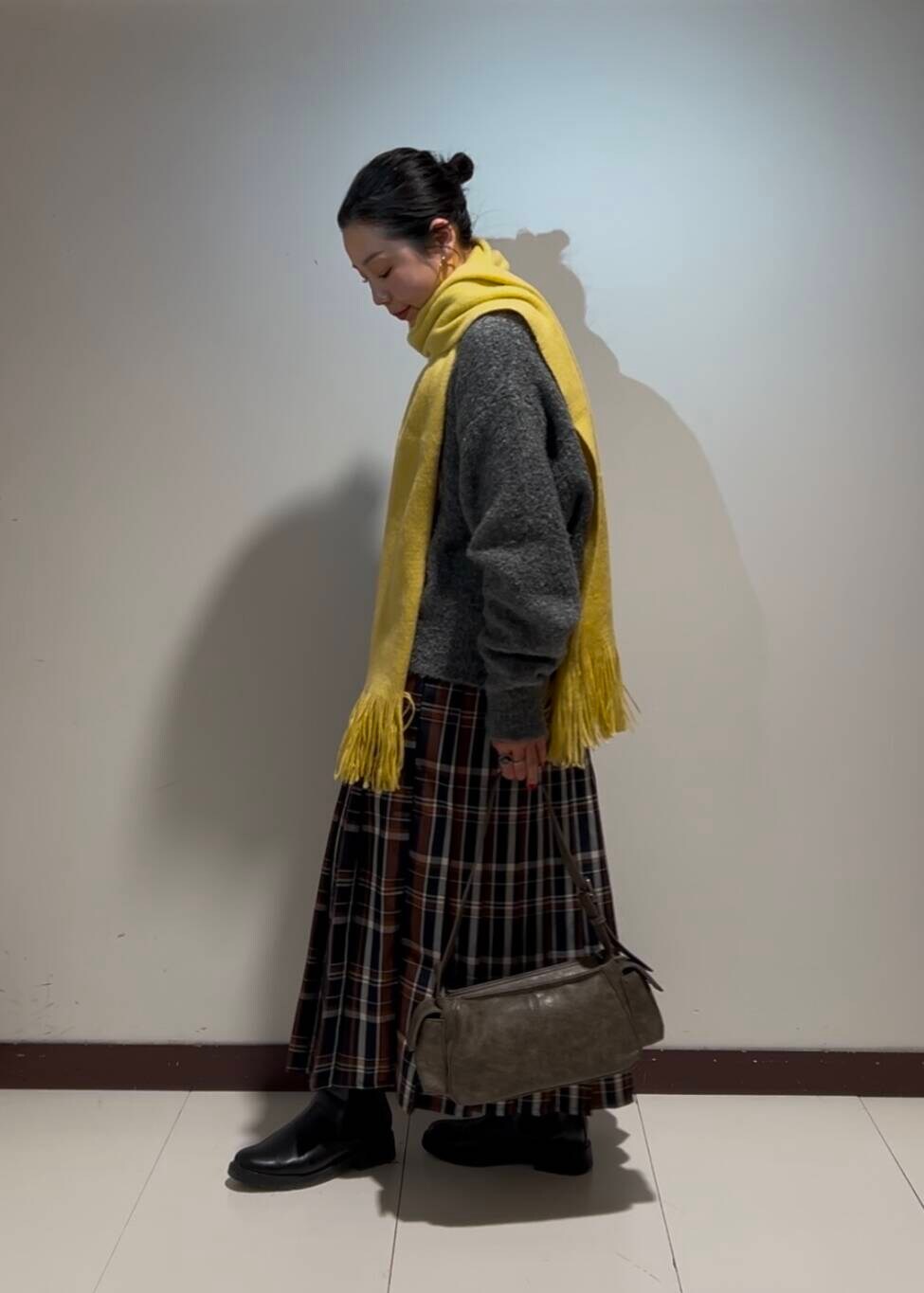 イエローのストールでコーディネート全体に差し色を入れたのもポイントです💛