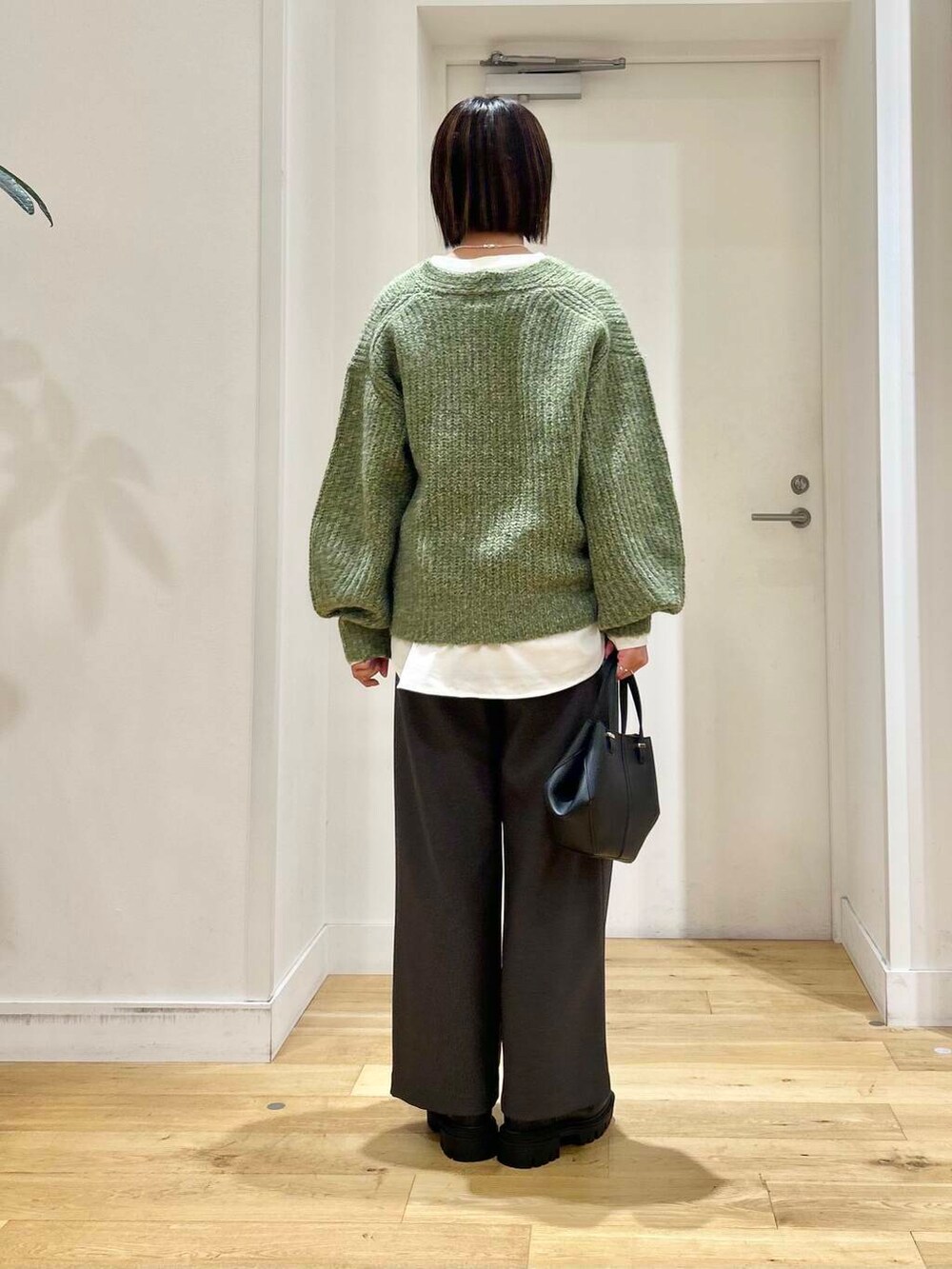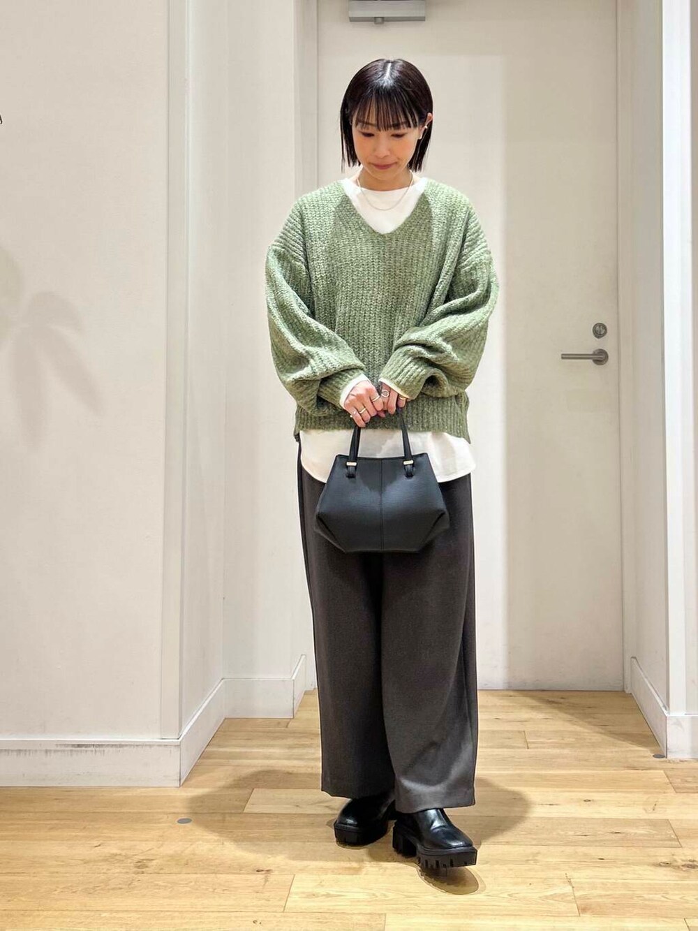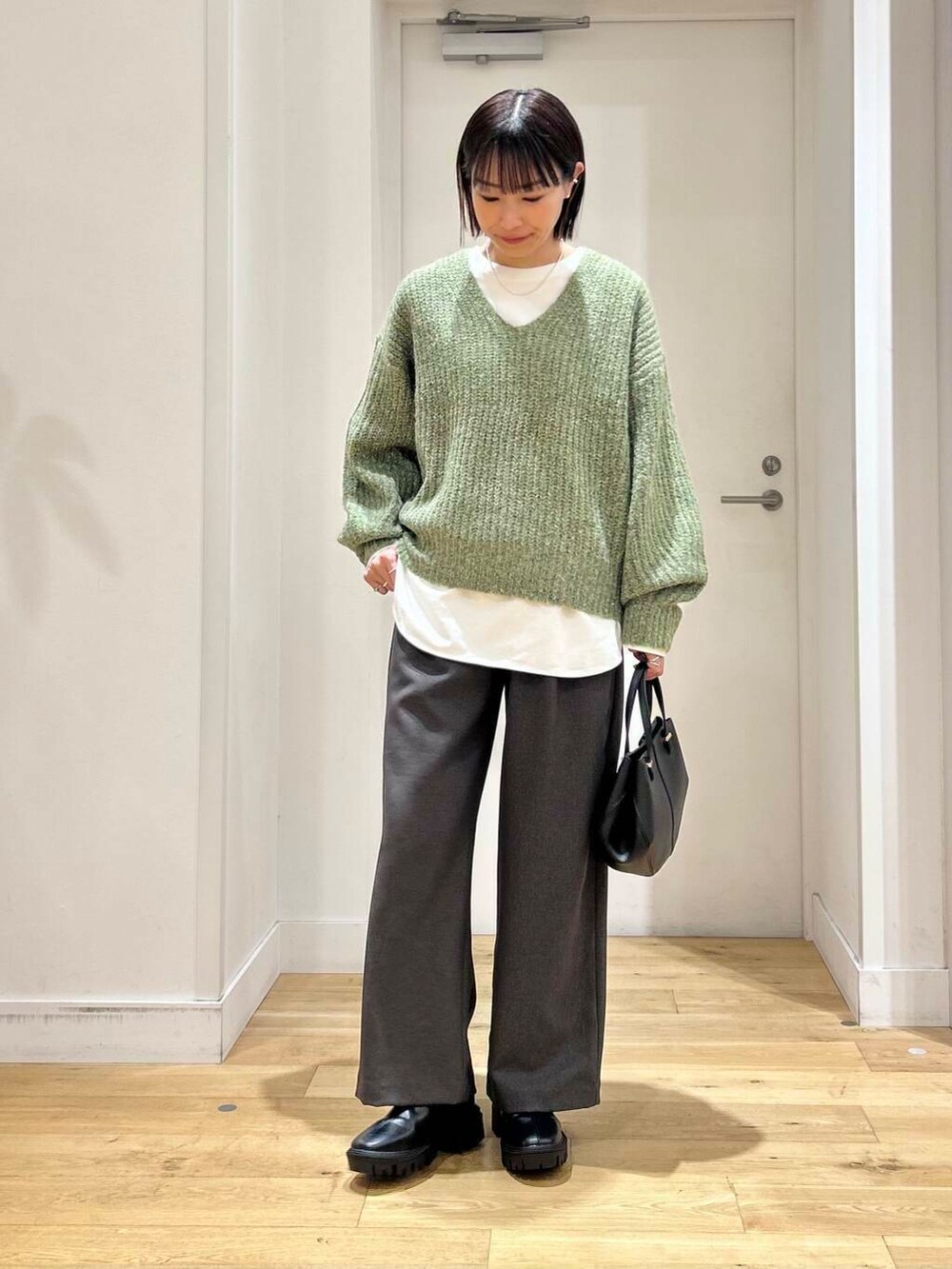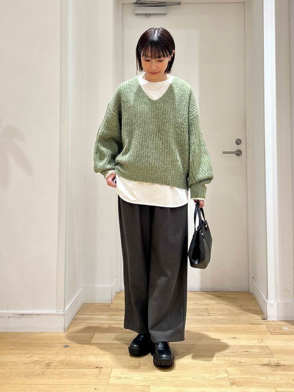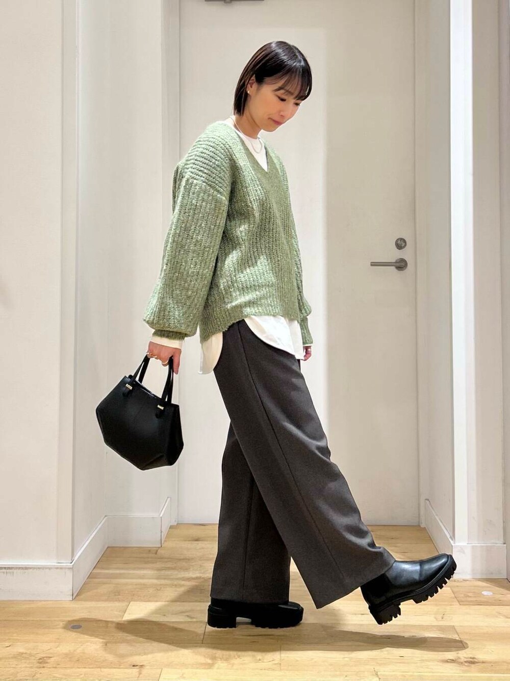 キレイなグリーンが目を引くニットは、たっぷりボリュームをもたせたスリーブが可愛いポイントです!